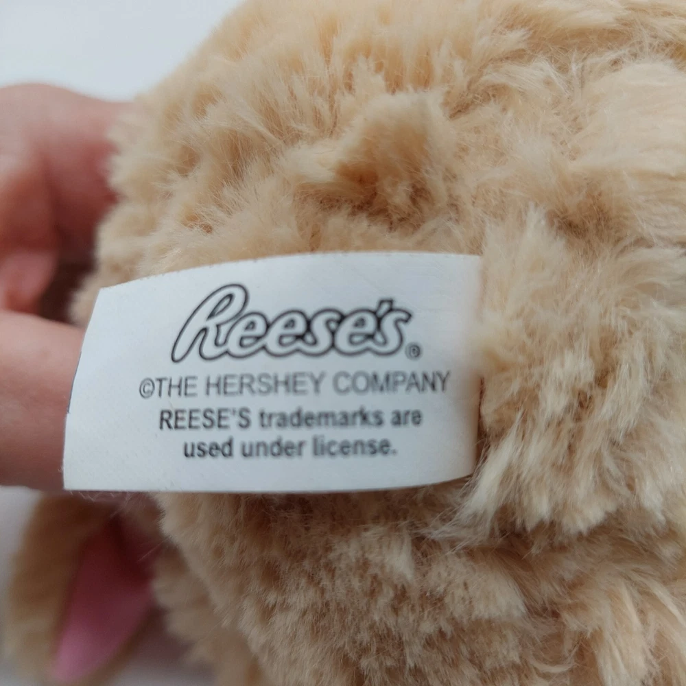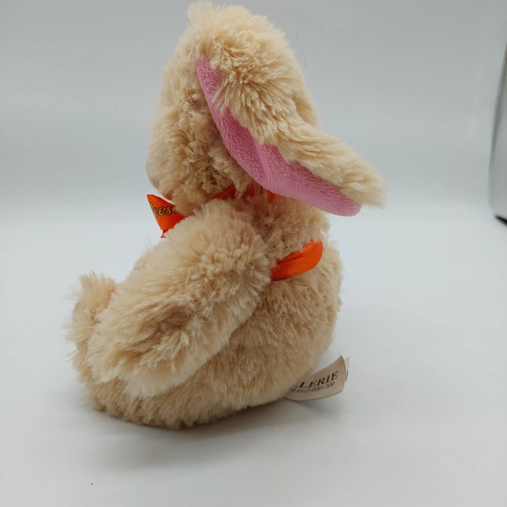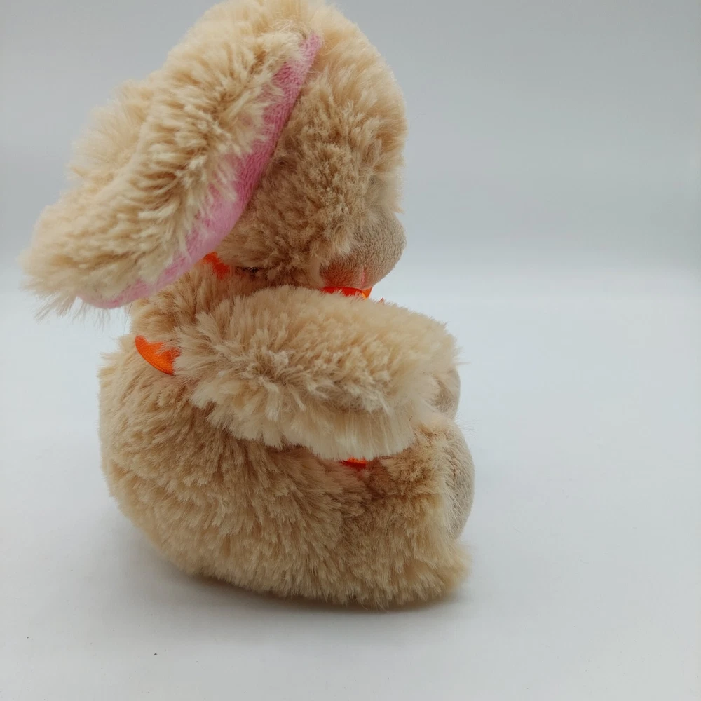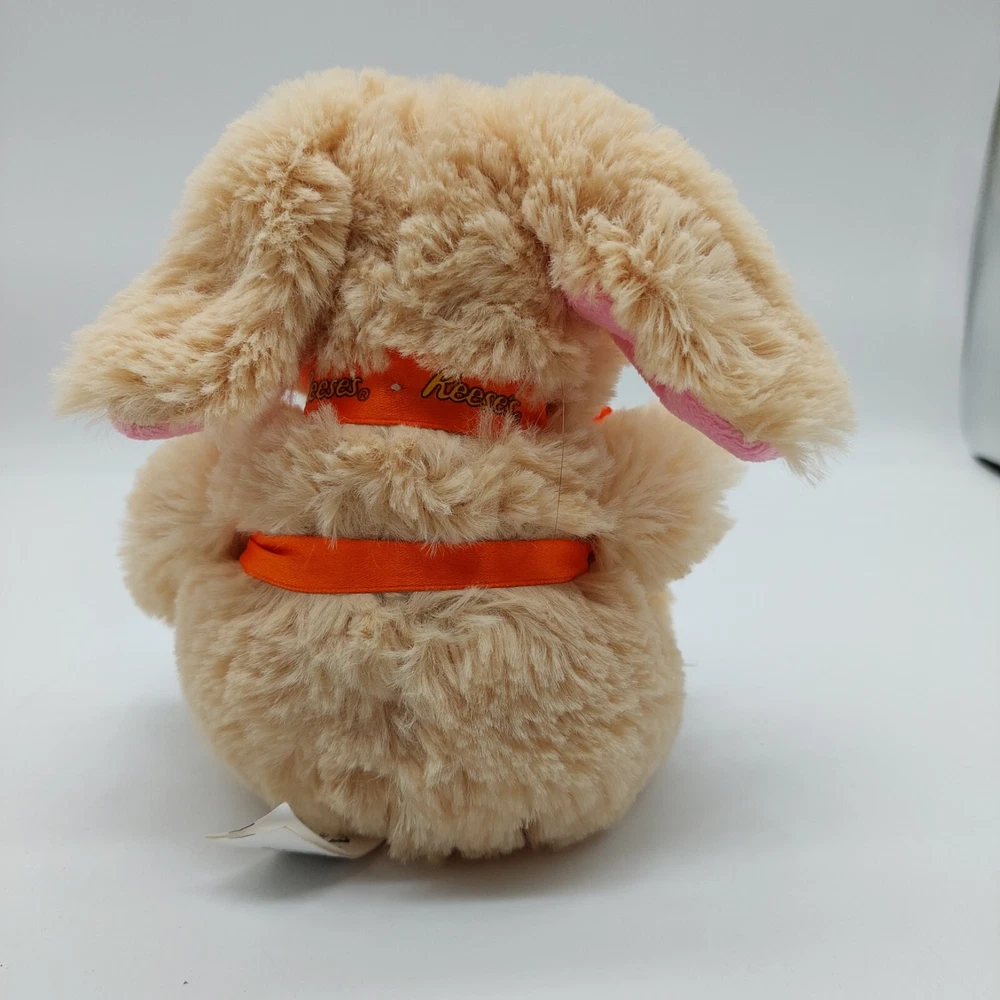Reese's Beige Bunny Rabbit Pink Ears Nose Plush Soft Orange Ribbon Bow 5"