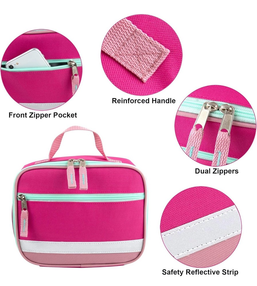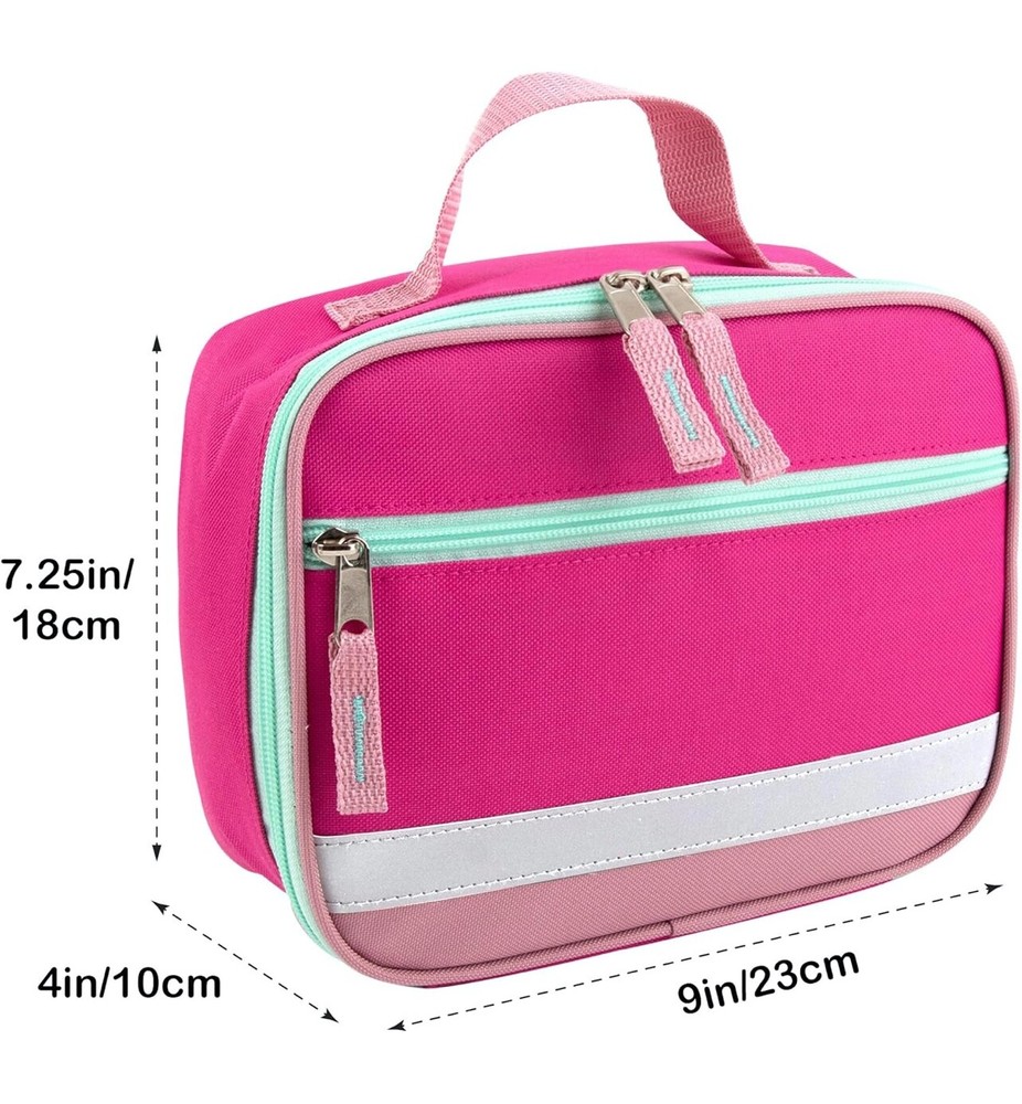 Girls Fridge Pak Reflective Insulated Lunch Bag Brand new item Description: Add a touch of style to your lunch routine with the Fridge Pak Reflective Strap Lunch Bag. Comes in three colors Black, Red & Blue , this lunch bag features a front zippered accessory pocket and a reflective strap for added safety. Perfect for carrying your lunch securely and in style. Our fully insulated lunch bags are made to keep your food hot or cold. Enjoy an easy wipe clean Lining, Lightweight durable construction, and travel friendly design that fits your lunch, snacks and beverages. Specifications: Colors Available: Pink, Blue & Teal Made Form 600D Polyester Has insulated lining that is easy to wipe clean Top handle for easy carrying Front zip pocket Measurements: 9 x 7.25 x 4 Tips: Color May be slightly different depending on computer and monitor setting. Package Content: 1 Girls Fridge Pak refelctive Insulated Lunch Bag ( Shipped with USPS Ground Advantage ) Shop with confidence! You're shopping with a PayPal verified, trusted eBay seller with excellent feedback rating. Payments: We accept PayPal, and also Visa, Mastercard, American Express, Discover, and eChecks through PayPal. Payments are required immediately using "Buy It Now" or after you're finished shopping using the eBay shopping cart. Shipping: We offer free domestic shipping with USPS Mail (1-5 business days delivery time). Your order will ship within 24 hours and in some instances same day of completing payment. International orders will receive a combined shipping discount, calculated by total weight. Please remember to pay for all items in one payment. International Buyers – Please Note: Import duties, taxes, and customs fees are not included in the item price or shipping cost. These charges are the buyer’s responsibility. Please check with your country’s customs office to determine what these additional costs will be prior to bidding or buying Return Policy: We accept returns for a refund if the item is shipped back within 30 days of delivery. Due to our fluctuating inventory, we cannot do exchanges, however, you can buy the desired item separately and we will refund the original item when it is received. Returned items must be in new, unused condition, with tags, if applicable. Communication: We check eBay messages frequently, multiple items a day. Feel free to message us if you have any questions or concerns. Please use eBay messages to communicate with us instead of email, because we check it more often and your messages are less likely to be lost. Feedback: Our main goal is provide a positive experience for our customers, and maintaining our excellent feedback rating is a top priority. Detailed Seller Ratings (DSR's): We strive to satisfy all our customers and to get that 5 star rating from you in all categories. If you feel that we don't deserve a five in any category, please contact us before leaving feedback and we will try our best to earn that 5 star rating from you. We are here to provide you with excellent customer service! Thank you for looking, your business is always appreciated.