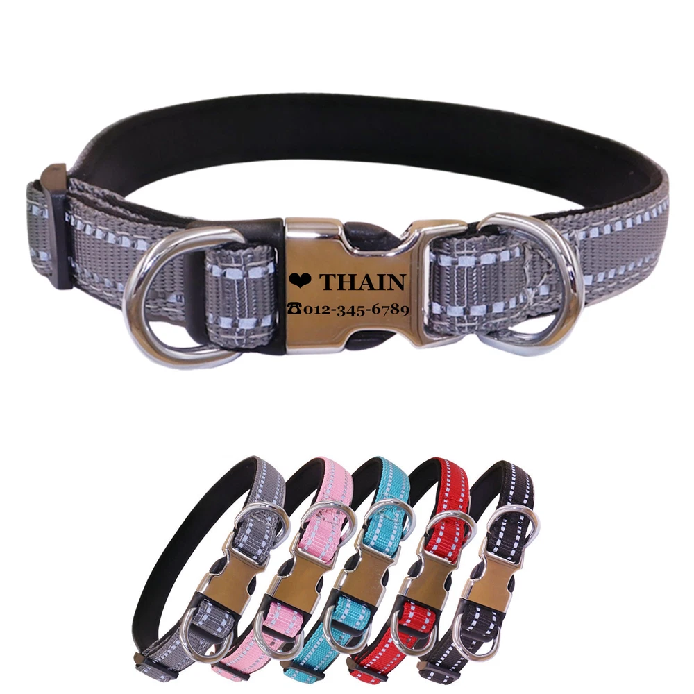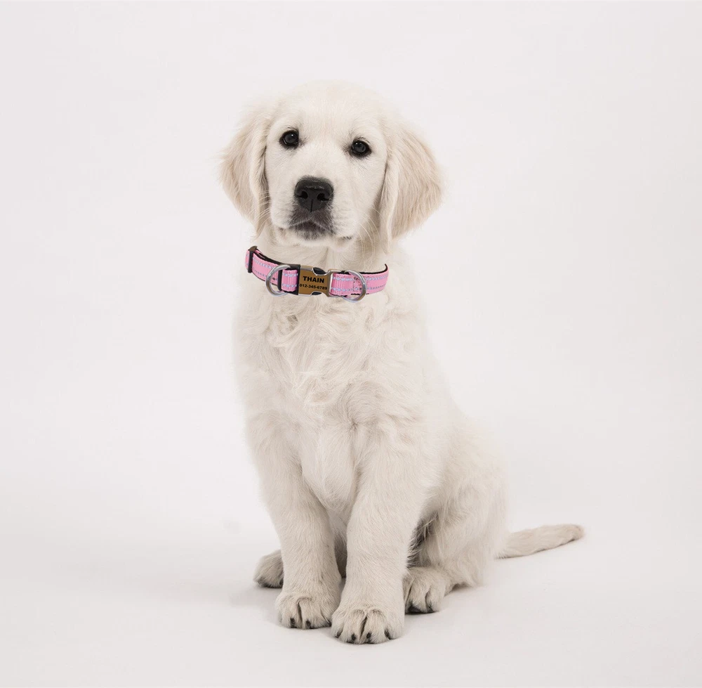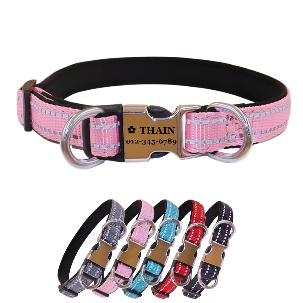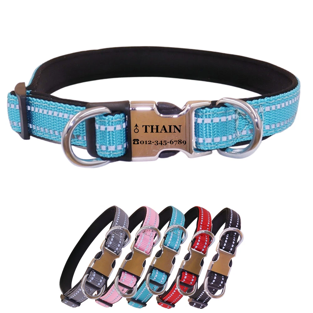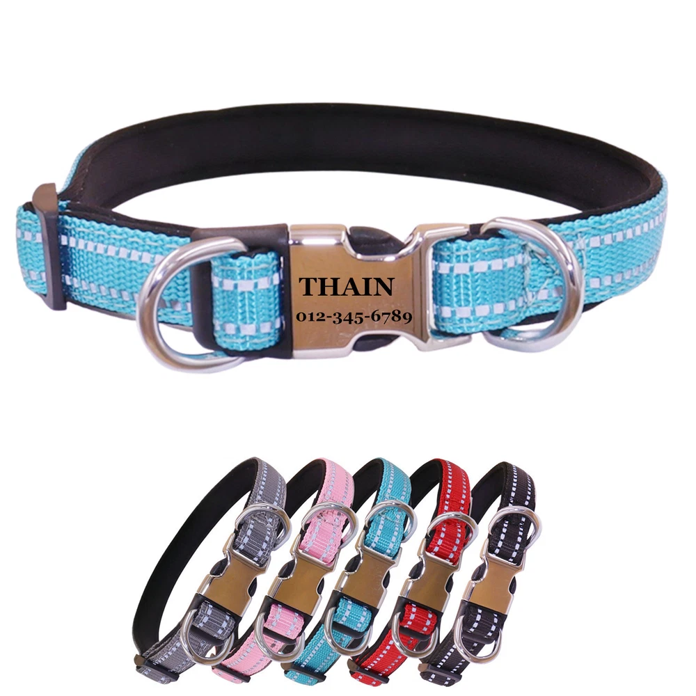 Product Name: THAIN Reflective Personalized Dog Collar Engraved Custom Buckle- Soft Nylon Pet Collar with Name Plate engraved Name, Phone Number, Silent,No Noise Adjustable Material: Nylon+Metal Buckle Size: XS/S / M/L(See the measurement on the size picture) Font used: Arial or Georgia How to Order Please write engraving details in box at the top of listing page. Product Features: ★ 【 Premium Reflective 】 Each collar will utilize 2 special lines of reflective thread. Would be reflective when lights shine on them at night. Walking in the dark would be safe. ★ 【 Durably Nylon and Soft Lining 】 Made of high-quality nylon webbing with soft neoprene lining. Soft lining ensure the comfortable. durable nylon and good sewing ensure the durability. ★ 【 Durable half-Metal Hardware 】 Thick welded double D-ring Double D ring ensures the balance of force on the dog's neck when you walk the dog. Adjustable plastic buckle ensure the collar fit most dogs and puppies. Engraved half-metal clasp appropriately reduces the weight of the collar, ensure it also fits small dogs. Half Metal Buckle where we will engrave the pet's name and phone number or address Laser engraving makes words are clear, keeps pet's information engraved permanent. This dog collar fits for many kinds of dogs, like Poodle, Pugs, Dachshund, Terrier, Beagle, Pitbull, Labrador, Bulldog and so on. Note: For engraved words,please send us a message as below: Line 1: pet's name ( you can add one symbol ★ ♂ ✿ ❤ ♛ ) Line 2: phone number (you can add one symbol ☎ ✆ ) Smaple: Line 1: ❤ Bella Line 2: ☎ 012-345-6789 How to choose the right size? Measurement Tips: Please use a soft ruler around your Cat's neck, to measure the surrounding of it. Please don't make it too tight. Better leave a space that can put 2 fingers. So your puppy may feel more comfortable. Size Width Neck Adjustable Weight XS 0.6"(1.5cm) 7-11"(18-28cm) 38g S 0.6"(1.5cm) 10-15"(25-38cm) 42g M 0.8"(2.0cm) 14-19"(36-48cm) 65g L 1.0"(2.5cm) 18-23"(45-58cm) 110g Package include: 1 pcs pet collar Shipping: 1.Items will be sent out in 24-48 hours on payment received from Monday to Saturday. Orders during weekends and holidays will be posted in the following working day. 2.it usually will take 15-20 business days to arrive by SPEEDPAK. 3.Please make sure your shipping address and the order information is correct before placing an order. We will not be responsible for item loss due to wrong or unknown address. 4.International buyers are responsible for duties and customs fees. Return Policy & Warranty: 1. In our store, you will enjoy 30 days return/refund guarantee (Excluding misuse of the item and damaged item). 2. If the item you received is faulty, damaged or incorrect, or any further problems, you can return it for replacement or refund, please contact our customer service on eBay within 30 days from item received. 3.For damaged items on arrival, please contact us immediately, sending us an email with a photo is preferred. We will offer solutions to such cases. Full refund or replacement will be guaranteed. Contact us: Customer satisfaction is very important to us, our goal is to earn 5 star positive feedback on every sale! We would appreciate the chance to correct any problems before posting anything other than 5 stars positive feedback. So if for ANY reason you are not happy, please contact us directly through “My Massage” or "Ask Seller Q". We will get back to you as soon as we are available. We are always stand-by to help for any questions or concerns.