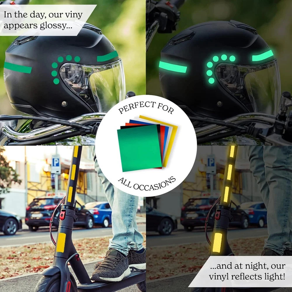 Reflective Vinyl Permanent Adhesive for Cricut Oracle 651 (6pk, 12 x 11 Inch)... STAY SAFE – No longer worry about reversing a car into your mailbox or your child riding their scooter in the dark, our reflective permanent vinyl perfectly protects all the family. It may appear glossy in daylight but our reflective vinyl shines brightly when exposed to light. SELECTION OF COLORS – Our permanent reflective tape comes in a variety of colors so you can stay safe whilst also staying tasteful. Choose from reflective vinyl in black, red, blue, green, yellow or white. MULTI-PURPOSE – Reflective sheet vinyl is ideal for protecting your child by sticking it to their scooter or even their school books. Although not automotive grade, it’s a great alternative reflective vinyl for car or bike. DURABLE & LONG LASTING – With it’s strong adhesive and water resistant surface, our reflector vinyl works in all environments. It’s the top choice for reflective vinyl lettering via Cricut or Silhouette. Shipping We offer FREE shipping on all orders! We ship within Three business days of payment, usually sooner. We use a selection of shipping services such as UPS, FedEx, USPS etc. We only ship to the lower 48 states, no APO/FPO addresses or PO Boxes allowed. Local pickups and combined shipping options are not provided at this time. Return You can return a product for up to 30 days from the date you purchased it. Any product you return must be in the same condition you received it and in the original packaging. Please keep the receipt. Payment We accept payment by any of the following methods: PayPal Please pay as soon as possible after winning an auction, as that will allow us to post your item to you sooner! Feedback Customer satisfaction is very important to us. If you have any problem with your order, please contact us and we will do our best to make you satisfied. Contact Us If you have any queries, please contact us via ebay. We usually respond within 24 hours on weekdays. Please visit our eBay store to check out other items for sale! Thank you for shopping at our store.