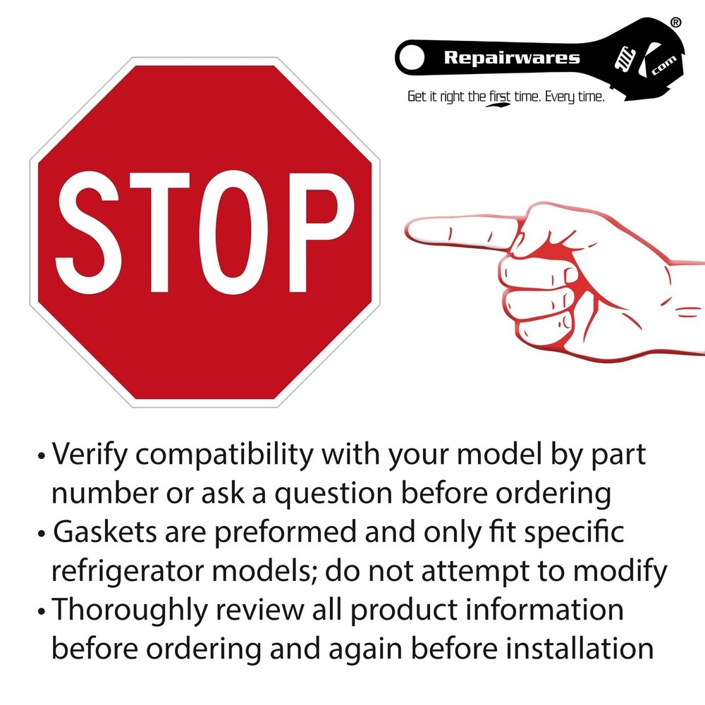 A refrigerator freezer door gasket creates a seal between the cold freezer refrigeration environment and the external environment. When this part fails or begins to fail, the freezer door may fail to close properly, fail to remain closed, or may sweat condensation and cause the accumulation of frost buildup in the freezer. Includes embedded magnetic strips along the leading edge that help to hold the refrigerator freezer door closed. Safely store any food that could thaw or deteriorate while the refrigerator freezer door is open during repair. Always take appropriate safety precautions when performing repairs. ⚠️ Verify compatibility with your model by part number or ask a question before ordering; Replaces freezer door gaskets only; Typically used with refrigerators featuring a bottom-mount freezer; Replaces part numbers: 12550116Q SAM59 8170655 8170646 8170633 12529016 WP12550116Q 10456810 10456810Q 10456838 10456838Q 10456860 10456860Q 12529016 12550116 12550116Q 4344354 8170398 8170510 8170633 8170646 8170655 Y10456838Q PS4240743 ⚠️ May retain compact shape after unpackaging - If needed, lay flat in a warm area or use a safe heat source (such as a blow dryer or the sun) to restore original shape and improve malleability ✫ Model Number 12550116Q SAM5912529016 WP12550116Q refrigerator freezer door gasket seal for many models from top brands such as Whirlpool, Sears Kenmore, KitchenAid, Amana, and others ✫ May be needed to address issues with refrigerator freezer door failing to close properly, failing to remain closed, or sweating condensation and causing the accumulation of frost buildup in the freezer ⚠️ Verify compatibility with your model by part number or ask a question before ordering; Replaces freezer door gaskets only; Typically used with refrigerators featuring a bottom-mount freezer; Replaces part numbers: 12550116Q SAM5912529016 WP12550116Q6810Q6838Q6860Q6QY10456838Q PS4240743 ⚠️ May retain compact shape after unpackaging - If needed, lay flat in a warm area or use a safe heat source (such as a blow dryer or the sun) to restore original shape and improve malleability