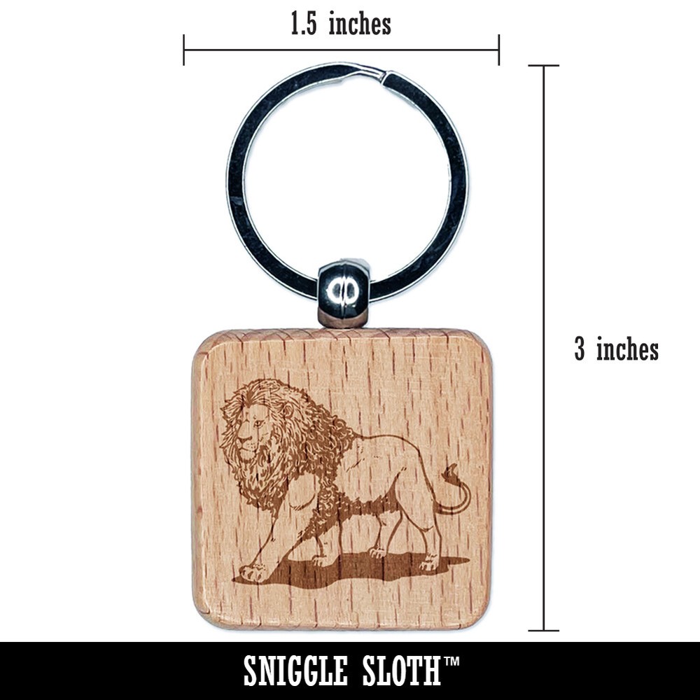 Regal Lion Engraved Wood Keychain with Mane Detail