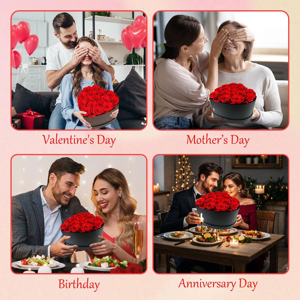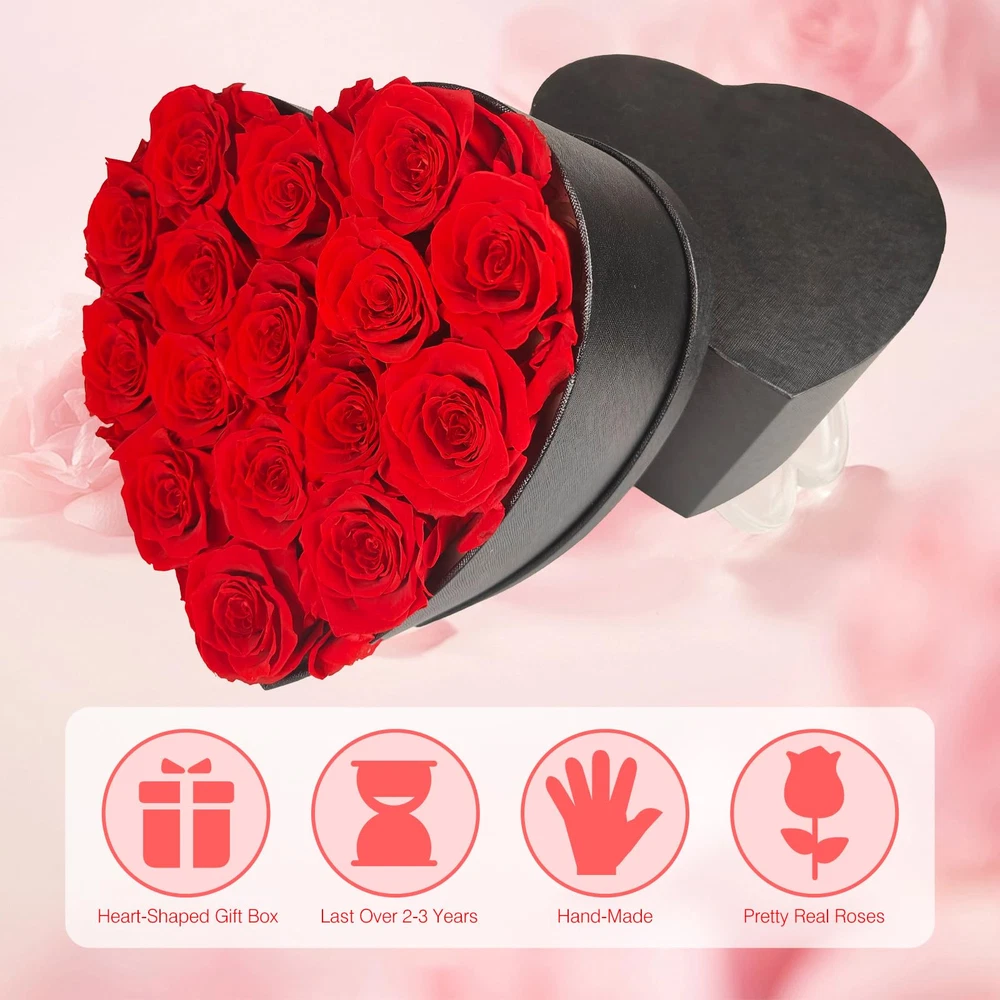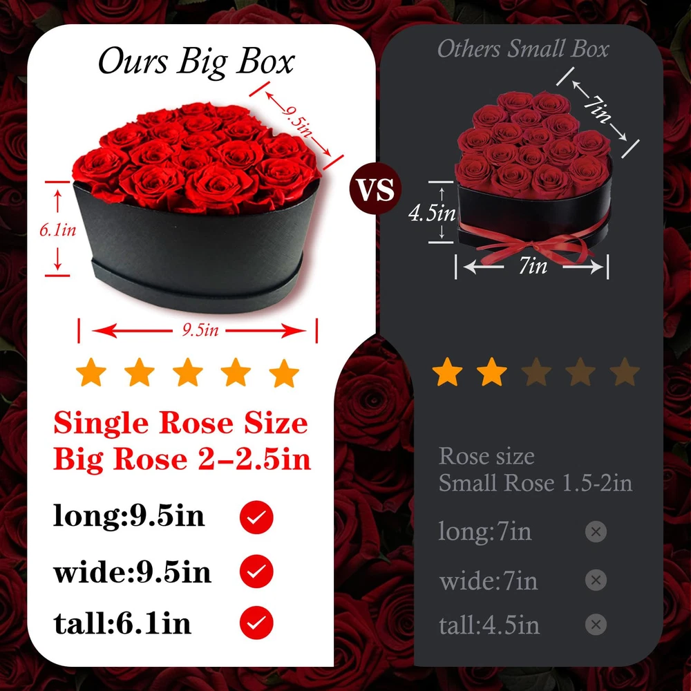 馃憤 GRADE A QUALITY LARGE SIZE ROSES : Each rose in our Forever Flowers Gift Box is carefully selected and made from high-quality fresh roses. Each flower measures 2-2.5in size and is composed of 16 roses. The large-sized flower shape represents high-quality floral material. 馃憤 BIG-SIZED GIFT HEART SHAPE BOX锛欴ue to the large size of the roses, we have chosen a large-sized gift box. The unique and exquisite heart-shaped gift box measures 9.4 * 9.4 * 6.6 inches, and the recipient will be filled with huge surprise and happiness. 馃憤 LONG AND LASTING: Preserved Flower is made from real fresh roses. It has the dual characteristics of long-term storage of fake flowers and non-toxic, harmless, and bright natural flowers. It preserves the internal tissues, moisture, and texture of the flowers and can be stored for 3-5 years without withering. 馃憤 METICULOUSLY HANDMADE:Every step of the craftsmanship of Eternal Flower relies on manual labor, and every heart-shaped gift box requires a lot of time and careful arrangement by floral designers. This is a thoughtful gift, a gift full of love. 馃憤 DELICATE AND ROMANTIC GIFT: Rose is a noble and beautiful flower, and the eternal flower represents this eternal love, lasting beauty. It is the best choice to gifts for women, mother, wife, partner, and is also a gift for Mother's Day, Valentine's Day, Christmas, birthdays, and more.