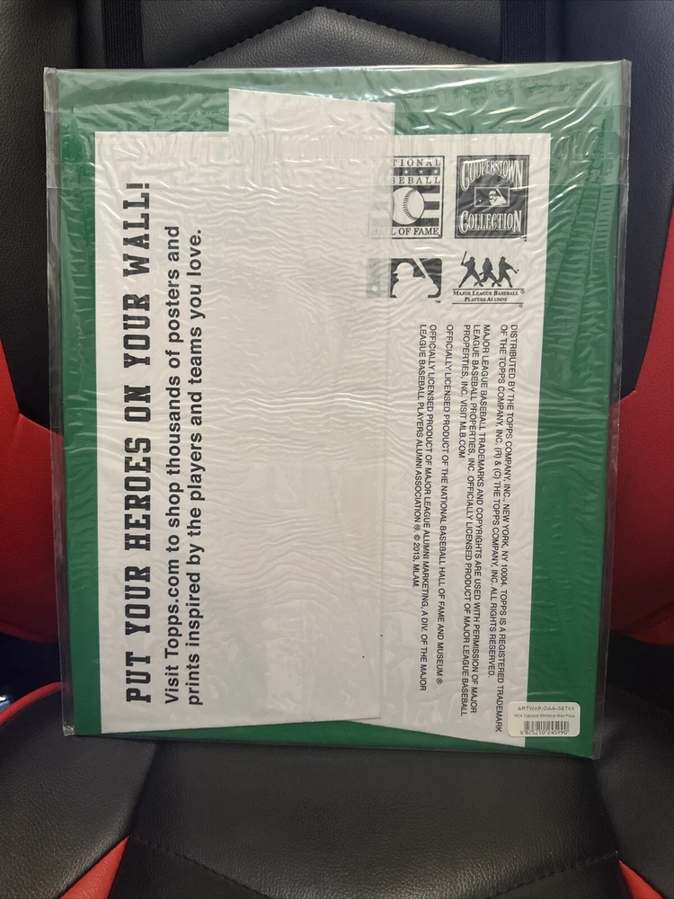 This 11x14" Topps pack once more in 74 poster cards features four iconic Oakland Athletics players: Reggie Jackson, Rollie Fingers, Catfish Hunter, and Joe Rudi as well as the Oakland As logo. The poster is officially licensed and showcases the team's legendary players in stunning photographs. Perfect for any baseball fan, this poster is a must-have for collectors and enthusiasts alike. The high-quality printing and attention to detail make this piece a true gem. Show your love for the Oakland Athletics with this amazing poster.