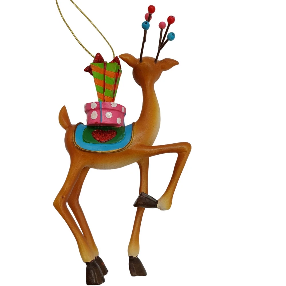Reindeer Ornament Resin Presents