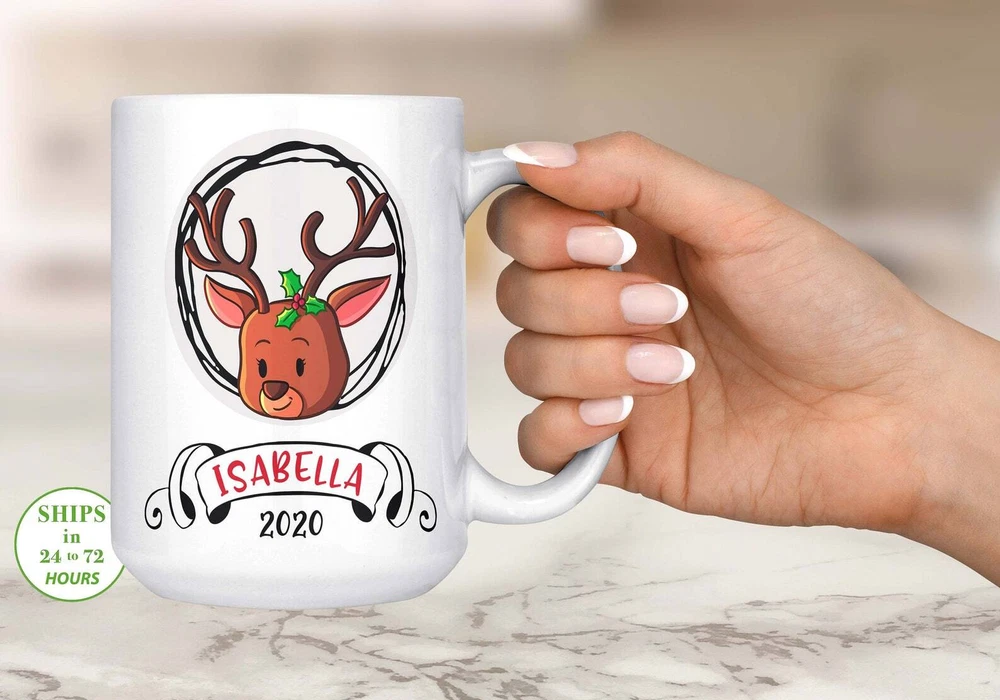 Reindeer Personalized Mug Persosanlzied Christmas Mug Reindeer Mug Reindeer Product Details.. This high quality 11oz. ceramic white mug has a premium hard coat that provides crisp and vibrant color reproduction sure to last for years. Perfect for all hot & cold beverages. The highest quality printing possible is used. It will never fade no matter how many times you wash it. Material: 100% Ceramic. Print both sides. Dishwasher and Microwave Safe. High Gloss + Premium White Finish. Printed in the U.S.A. Personalized & Custom. We support personalized and custom mug to add custom, when placing an order, you can add notes to the "order note" in shipping address section. Also you can contact us directly via message. Shipping Info. Ready to ship in 1 to 2 business days, All products are made-to-order and proudly printed in the United States. Shipped by USPS and DHL, You will receive your order in 5-7 days. Replace & Refund. All products are defective during shipping broken, chipped will be replaced free of charge. You are not satisfied with the product, we will refund 100% money to you. If any other issues arise, please do not hesitate to message, we would be more than happy to assist you.