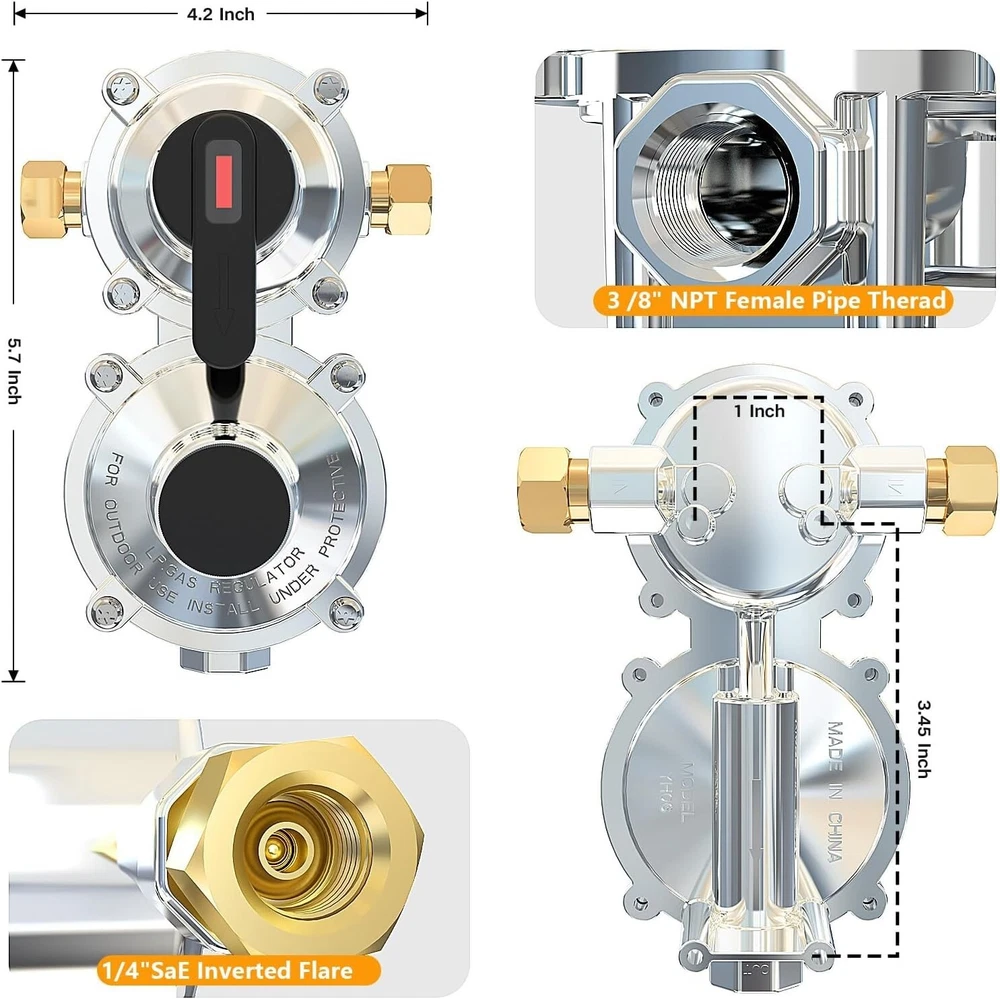 Reliable 2-Stage Propane Regulator & Hoses for RV/Camping - Uninterrupted Supply ‹ › ‹ › ‹ › ‹ › ‹ › ‹ › ‹ › ‹ › ‹ › ‹ › Reliable 2-Stage Propane Regulator & Hoses for RV/Camping Uninterrupted Supply Upgrade your outdoor experience with our 2-Stage RV Propane Regulator, ensuring a seamless and consistent gas supply for all your cooking, heating, and more. Features: Automatic Changeover: Connect up to 2 propane tanks, automatically switching from primary to reserve to maintain an uninterrupted flow. Easy Monitoring: Indicator light turns red to alert when propane needs to be refilled; equipped with a dial gauge that glows in the dark for easy reading. Durable & Weather-Resistant: Made from stainless steel braided hoses for superior durability, anti-aging, and heat-resistant performance. Specifications: Master Cylinder Capacity of 210,000 BTU/Hour; Reserve Cylinder at 130,000 BTU/Hour; constructed with 100% solid brass fittings. Wide Compatibility: Suitable for RVs with dual propane tanks, ensuring safe and reliable gas supply for all your propane-powered devices. Benefits: Reliable and constant gas pressure enhances the efficiency of your appliances. Seamless switching between tanks provides peace of mind while on the road. Easy installation, compatible with a range of propane tanks from 5-40 lbs. Peaceful camping experiences without worries about running out of propane unexpectedly. Why choose our Reliable 2-Stage Propane Regulator? Elevate your RV adventures with the ultimate peace of mind. Our 2-Stage Auto Changeover LP Propane Gas Regulator serves as your trusted companion, expertly designed to ensure your propane supply is both secure and efficient. Its robust materials stand the test of outdoor environments while providing you with user-friendly features. Don’t compromise on the reliability of your RV’s gas supply. Embrace convenience and safety; order your 2-Stage Propane Regulator and Hoses today! Package Includes: 1 PC 2 Stage Auto Changeover RV LP Propane Regulator 2 Pack 18'' Stainless Braided QCC1 1/4" Inverted Male Flare RV Pigtail Propane Hoses with Gauge 1 Roll Sealing Tape 1 Wrench Shipping Free & Fast Shipping - We offer free shipping to most of the USA with a normal delivery time of 3-7 days. However, due to the current situation, additional delivery time (up to 3 weeks) may be required for some items. Alternative Carriers - We may use alternative carriers (e.g. USPS, FedEx, UPS, etc.) to ensure your package arrives safely and on time. Due to the use of multiple carriers, we are unable to provide a tracking number automatically. Handling Time - Orders are processed and shipped within 1-2 business days of receiving cleared payment. Shipping Restrictions - Shipping to Alaska, Hawaii, Puerto Rico, Guam, and other US territories may incur shipping charges or delivery restrictions. Please contact us before ordering, or your order can be refunded/cancelled. State Restrictions - There may be restrictions based on your state of purchase. For example, certain items may not be shipped to California due to state regulations. Contact for Tracking Updates - If you require tracking updates or have any concerns about the delivery of your order, please feel free to contact us, and we will be happy to assist you. Return Please see our eBay Return Policy. Thank you. Payment We accept all major credit cards, PayPal, and Apple Pay for your convenience. Your payment information is secure and encrypted to ensure a safe and seamless transaction. Please complete your payment within 3 days of purchase to avoid any delays in shipping. Feedback Your feedback is extremely important to us. We strive to provide the best products and customer service possible. If you are satisfied with your purchase, please take a moment to leave us a positive review. If you have any concerns or issues with your order, please contact us before leaving negative feedback. We are committed to resolving any problems and ensuring your satisfaction. Contact Us If you have any questions or concerns, please feel free to reach out to our customer support team. You can contact us through the eBay messaging system. We are available Monday to Friday, 9:00 am to 5:00 pm EST, and we will do our best to respond to your inquiry within 24 hours. Thank you for supporting our small family business! Manufacturer Part Number: RV Propane Regulator UPC: Not Set MPN: Not Set Unit Quantity: 2.66 Brand: Unbranded Part Type: Accessories Country/Region of Manufacture: Not Set Warranty: 1 Year Unit Type: lb