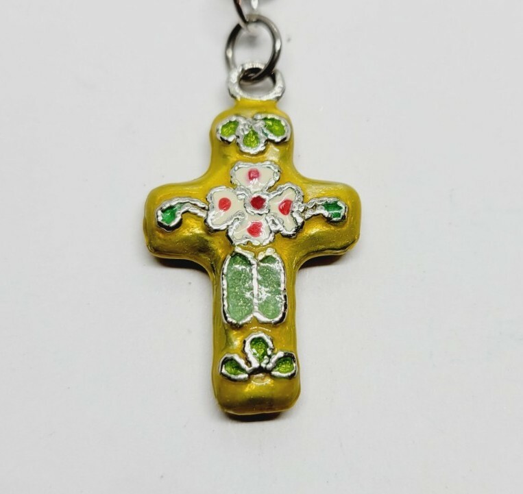 Vintage Catholic 40" Crystal Bead Silver Tone Filigree ROSARY Crucifix Necklace