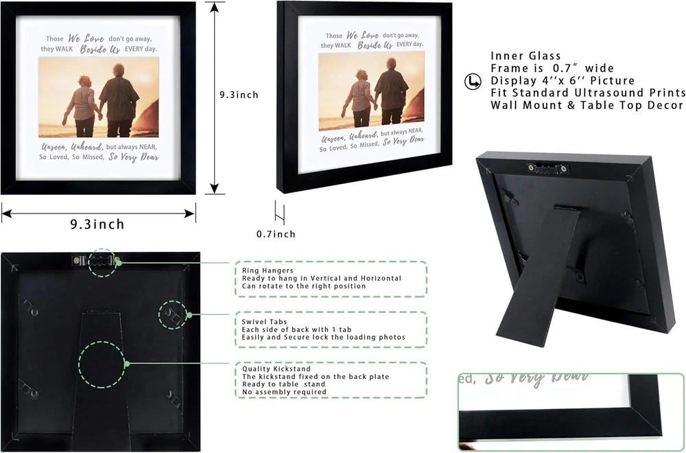 Store New Arrivals Add to Favorite View Feedback Contact Remembrance Memorial Picture Frame - Sympathy Gifts Idea for Loss of Loved One, Grandmother, Grandfather, Grandparents, Desktop, Black Description Item model number Small-Black Style Classic Capacity 1 Photos Number of Items 1 Unit Count 1 Count Batteries required No Special Feature Easel Back Frame Material Wood Finish Type Silver Frame Type Single Picture Frame Item Weight 15 ounces Size Small Occasion Grandparents Day, New Year, Retirement Target Audience Unisex Adult Orientation Horizontal Mounting Type Wall Mount Color Black Shape Square Back Material Type Wood Finish types Silver Product Dimensions 14"L x 11"W Number of pieces 1 【GRIEF MOURNING PICTURE FRAME】- A sentimental memorial gift for loss of loved one - Those We Love Don't Go Away, They Walk Beside Us Every Day. Unseen, Unheard, But Always Near, So Loved, So Missed, So Very Dear. Everyone who who has lost someone close to them will get relief and comfort from the sadness when they touched the heart by this bereavement photo frame 【A LIFE TIME KEEPSAKE】- Beautiful memories, treasured forever - Our memorial picture frame collage with a Inspirational message reads: I thought of you with love today. All I have are memories, and you picture in a frame, your memory is a keepsake, from which I'll never part. God has you in his arms, I have you in my hearts. You didn’t go alone, we will link in loving memory, although I cannot see you 【SYMPATHY GIFT TO ACKNOWLEDGE LOSS】- Are you still in trouble? What can't you do for friends who have lost their loved ones besides grieving together. Buying this remembrance photo frame with sentimental poem makes a thoughtful sympathy gift for loss of loved parent, child, son, daughter, mother, father, grandma, grandpa, aunt or uncle. An appreciated comfort gift for a grieving heart 【FRAME QUALITY】- The inner board size 8x8 classic black photo frame can hold 4 x 6 horizontal photograph and can be displayed on home or office tabletop. The outer size is 9"X9".And all mats are printing with silver color words.This is a high quality perfect photo frame with plexiglass and mat to display loved some photograph, is suitable for many styles of decor 【MEMORIAL PHOTO FRAME】- Perfect frame with comforting message is both comforting and inspirational to display some pictures of a loved one, it can be a brilliant smile, a mark of growth, a happy moment, or a serious work. And those makes this frame a thoughtful memorial gift, sympathy gift, condolence gift, or funeral gift. Nice tribute to cherish the memory of a lost family member or friend Product Description ABOUT US We offer the best prices around on high quality products. Our E-store includes media such as books, movies, music and games while offering electronics, toys, sporting apparel, clothing, tools, general home, garden items and more. SHIPPING We are always working hard to ensure your package arrives as soon as possible. Please understand that some factors like weather, high postal traffic, and the performance of shipping companies are outside of our control. We offer free shipping to the lower 48 states and ship within 2 business days of payment, usually sooner. We do not accept P.O. Boxes. Please provide a physical address. For shipping outside of the continental USA, we only use eBay's Global Shipping Program.The item is shipped to KY and then sent to the rest of the world. International customers are responsible for all duties and taxes. Continue to check out in order to calculate costs for shipping the item to your country. Messages regarding eBay's Global Shipping Program MUST be directed at eBay EXCLUSIVELY. RETURNS We offer a 30-Day Return Policy on items which you are not completely satisfied with. You have the option for a full-refund or an exchange of the item. No returns are available on items shipped outside of the USA. PAYMENT We accept PayPal. CONTACT US This page content is yet to come Please ad us to your favorite seller and visit again later Thank You CUSTOMER SATISFACTION We try our very best to make sure every customer is completely satisfied. If there's a problem, message us! We're happy to help. WE ACCEPT Copyright © 2021 AutoDS. | All Rights Reserved
