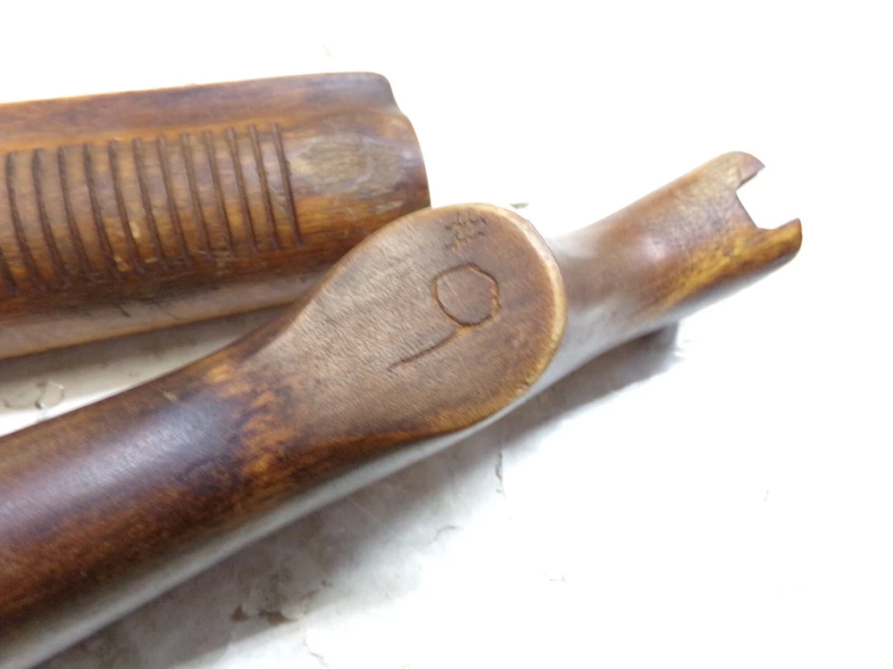 Used Remington 870 12 gauge stock set for military or police use shotguns. Marked #9 on the pistol grip. Has some scratches and contains the buttstock screw.