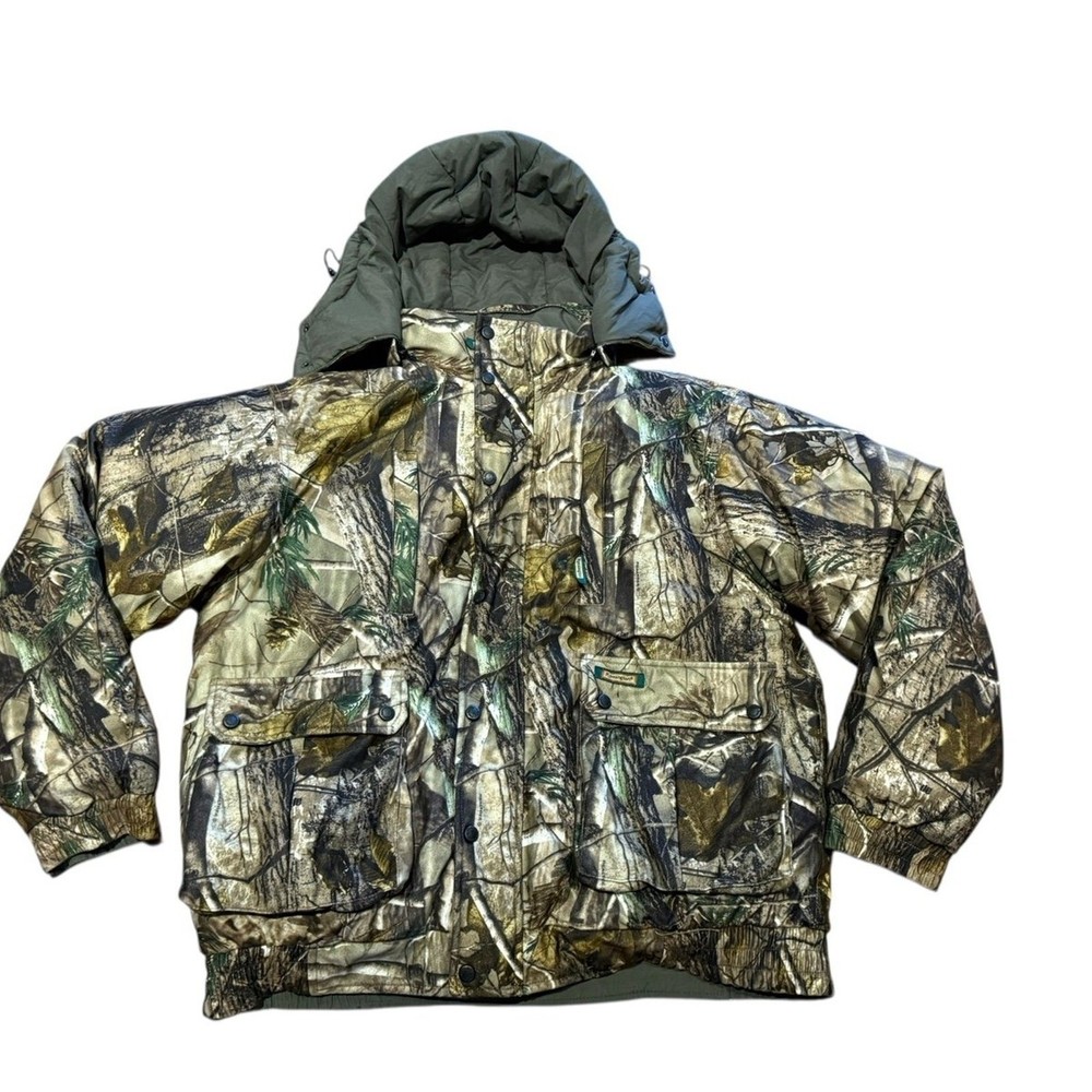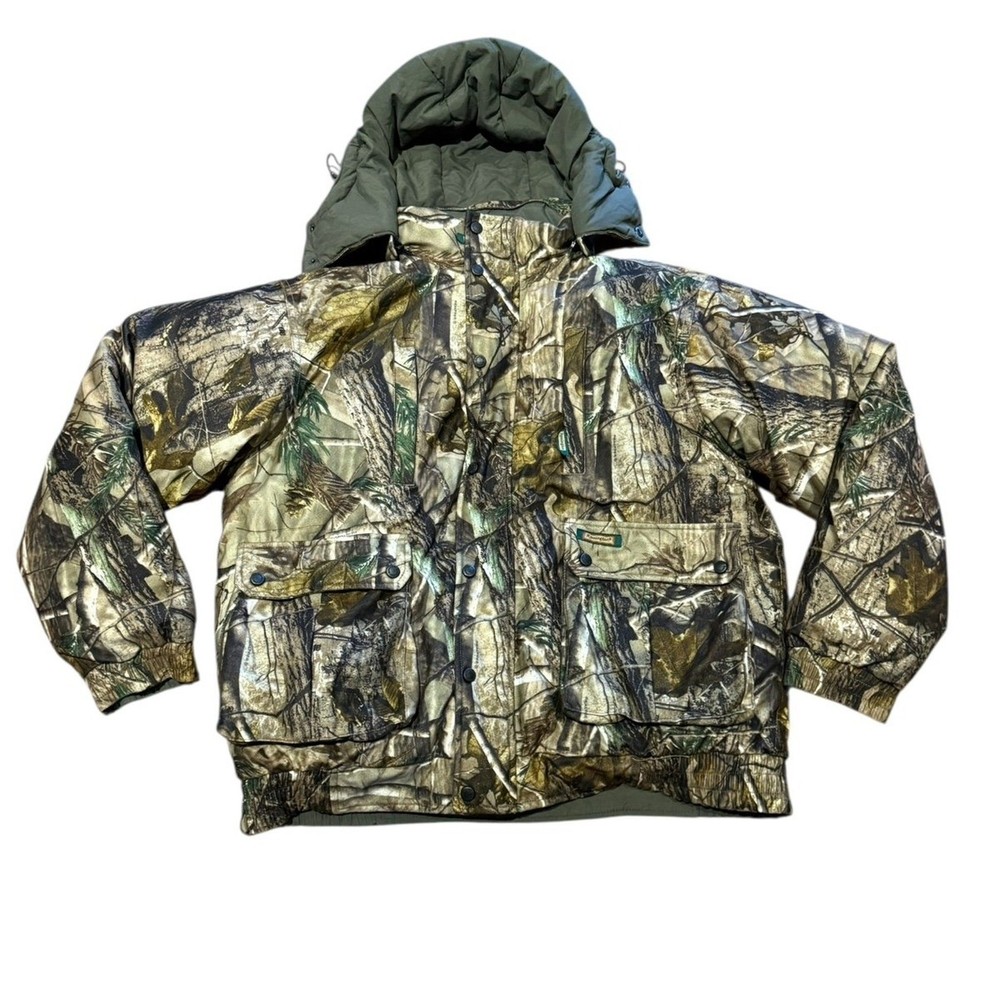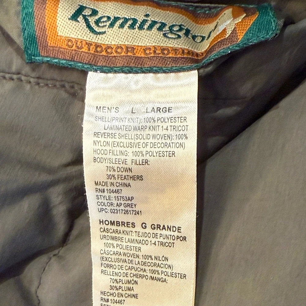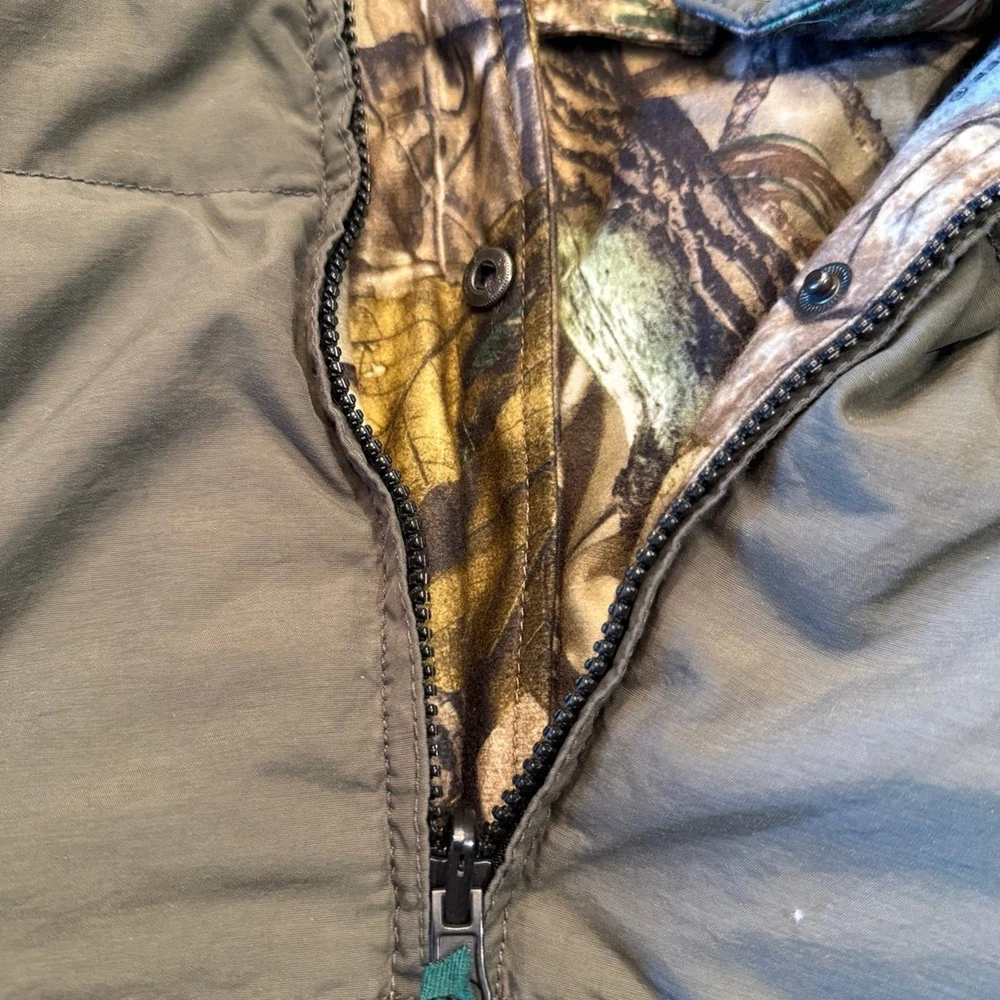 This is a really nice men’s down filled jacket by Remington. Men’s size large olive puffer coat with a camo reversible side. Jacket is in excellent gently used condition.