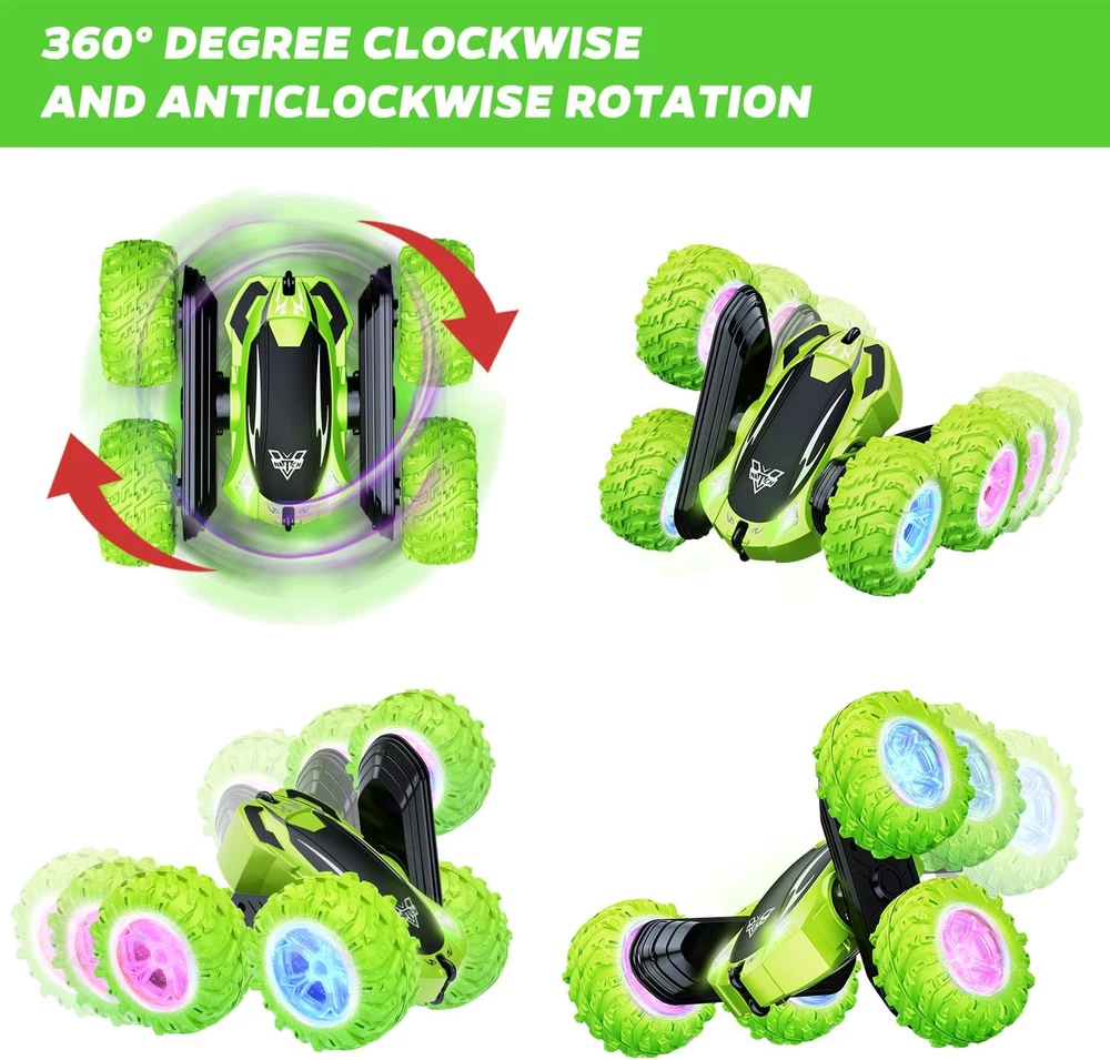 Menu Other Items Feedbacks About Us Contact Us Add To Favorites Remote Control Car, 2.4Ghz Electric Race Stunt Car, Double Sided 360° Rolling Rotating Rotation, LED Headlights RC 4WD High Speed off Road Gift for 3 4 5 6 7 8-12 Year Old Boy Toys (Green) Remote Control Stunt Car - It is well constructed for all the surfaces and withstand all kinds of bumps and runs perfectly on them. This RC truck has durable and powerful components to provide you the realistic racing and wonderful off-road game experience. LED Headlight Racing Car - Easy to control the car, it spins, flips, goes backward, forward,turn left, turn right, even the car hit the wall, it will flip. Suitable for competitions on all kinds of ground, such as highway, lawn, snow, rock, sand, etc. Sturdy Construction - The wheels are rubber so it grips well. The 360°rotating remote control car toy can be rampant and not afraid of falling, because the wheel is very protective. Packing - RC Stunt Car x 1, Remote Controller x 1, Cross Screwdriver x 1, USB Charging Cable x 1, User Manual x 1. The car uses the rechargeable batteries,the remote control takes 2 x "AA" Batteries (All included) Ideal RC Car Gift for Racing Car Lovers - The race car works well on smooth surface, suitable to play indoor and outdoor. The best gift choice for Christmas or Birthday. A funny interative car toy for kids and teens 5,6,7,8,9,10+ years old. Product Description Item Specification Item Weight 1 pounds Color Green Product Dimensions 1 x 1 x 1 inches Manufacturer recommended age 36 months - 12 years Dimensions Shipping Returns Additional Info Product Dimensions: 6.54 inches x 7.44 inches x 4.25 inches. Weight: 1.0 lb Fast shipping is very important for us. Our standard shipping service is FREE. Your order will be shipped within 1-3 business days upon full payment received. Most items are delivered within 3-5 business days, however, please allow 3-10 business days. We are shipping only to USA. We only ship to the confirmed Paypal address. We reserve the right to cancel any order for any reason at any time. We are not responsible for undeliverable addresses. We offer a 30 day return policy from checkout winning date. Your satisfaction is guaranteed! If for any reason you are unhappy with your item, just return it within 30 days for a full refund, minus shipping cost. Please contact us prior to initiating a return so that we can issue you a refund authorization. Items defective upon receipt must be packaged in their retail packaging as if new and returned with a detailed description of the problem. Return shipping fees are not refundable. We reserve the right to decline any returns if the above guidelines are not followed. All of our items, unless otherwise stated, will only run on 120 volts. Please check to make sure your country complies with these specifications. If you have a problem or question regarding your transaction please contact us before leaving any type of feedback. We will work with you to resolve any problem you may have.