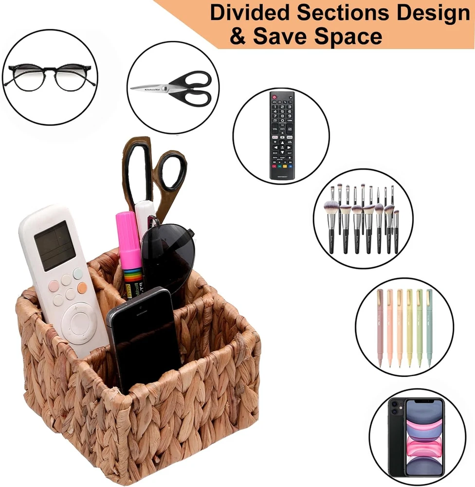 Remote Control Holder Wicker Desk Organizer Divided Storage Basket 3 Compartment Remote Control Holder Wicker Desk Organizer Divided Storage Basket,Hand Woven Cosmetic Storage Box with 3 Compartments,Water Hyacinth Remote Control Basket for Desktop Organizing Product Description: The Remote Control Holder Wicker Desk Organizer is a stylish and functional solution for keeping your remote controls and small items neatly organized. Hand-woven from water hyacinth, this basket offers a natural aesthetic while providing durable and spacious storage. With three divided compartments, it allows for efficient organization of remotes, cosmetics, and other small accessories, helping to reduce clutter and maintain a tidy desktop or living area. Features: Handwoven Water Hyacinth Design: Crafted from eco-friendly, handwoven water hyacinth, this storage basket offers a beautiful, rustic look that complements any home or office décor. Three Divided Compartments: The organizer features three separate compartments, allowing you to neatly store remote controls, cosmetics, or other small essentials. Versatile Storage Solution: Ideal for use in living rooms, offices, or bathrooms, this basket can be used for a variety of storage needs, from desk organization to cosmetic storage. Durable and Sturdy Construction: Made with high-quality materials, the basket is both sturdy and long-lasting, providing reliable storage for everyday use. Space-Saving Design: Compact and efficient, this organizer helps maximize space by keeping items within easy reach while minimizing clutter. Easy to Clean: The smooth surface of the wicker makes it easy to wipe clean, ensuring that your storage solution remains looking fresh and organized. Lightweight and Portable: The lightweight design makes it easy to move and reposition, whether you're organizing your desk or transferring it to another room. Stylish and Functional: Combining practical storage with an attractive design, this wicker organizer adds both functionality and a touch of elegance to any room. Part Number LYD05 Batteries Required? No Finish Powder Coated Number of Items 1 Mounting Type Insert Mount Item Weight 0.35 Kilograms Number of Compartments 3 Unit Count 1.0 Count Color Brown Finish Type Powder Coated Product Dimensions 5.51"D x 5.51"W x 4.33"H Material Water Hyacinth Specific Uses For Product Storage Item Weight 12.3 ounces Shape Rectangular Package Type FFP Special Features Moistureproof Special Feature Moistureproof Included Components No Shipping Fast shipping is very important for us. Our standard USA shipping service is FREE. Your order will be shipped within 1-2 business days upon full payment received. Your order will be delivered within 1-3 business days after the handling time. We only ship to the confirmed address. We reserve the right to cancel any order for any reason at any time. We are not responsible for undeliverable addresses. Returns and payment We offer a 30 days return policy from checkout winning date. FeedBack Your feedback very important to us, after you get your package and you are satisfied with our service please leave us positive feedback If you have any problem with your order / any questions please before leave any type of feedback For any questions, using eBay contact system Please visit our eBay store to check out other items for sale! Thank you for shopping at our store.