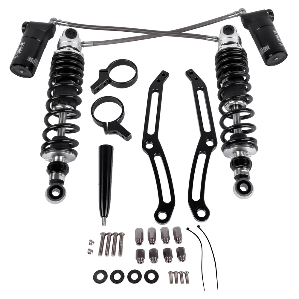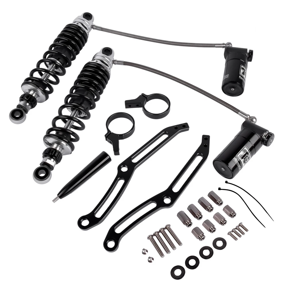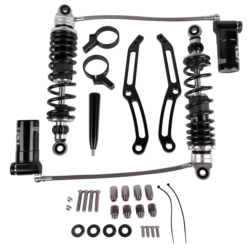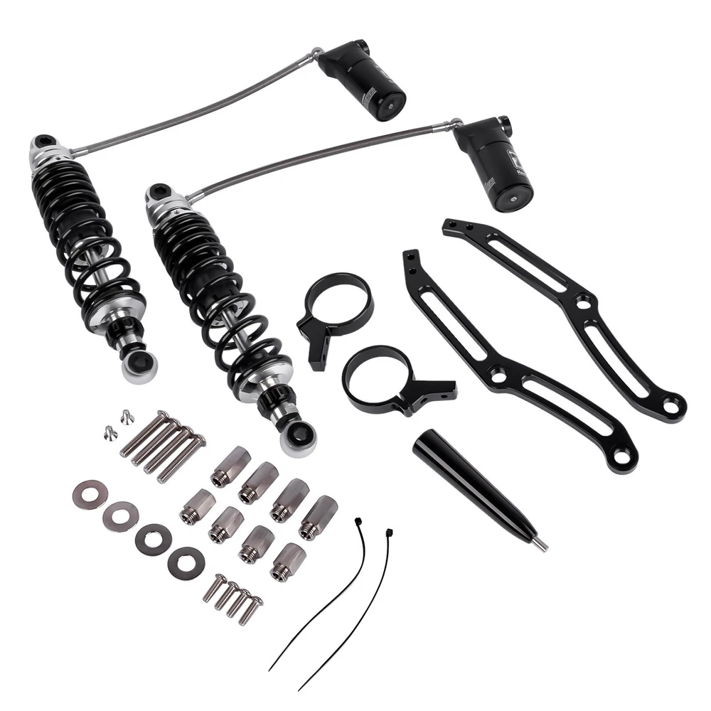 Details Features: 100% brand new Placement on Vehicle: Rear Color: As picture shown Preload setting on both shocks allows suspension adjustment based on rider, passenger, and equipment weight for optimal performance No tools required for compression and rebound damping adjustments, easy to install and calibrate Buffer rubber ring provide improved plush ride quality, control, and resistance to bottoming-out High-pressure nitrogen filling design resists heat fading for achieving smooth performance. Characteristic style: Exposed remote reservoirs with stainless steel lines Progressive rate springs stiffen quickly for improved control when you pick up the pace Billet preload adjustment tool is included for repairable and rebuildable Reservoir feature a black hard-coat finish with stainless steel lines for performance style Damping Setting Reference: First, turn the adjuster counterclockwise until it stops (this is position 0), then count the clicks while turning the adjuster clockwise to the desired setting. Note : This table is a reference for adjustment benchmark,you can make appropriate adjustments according to your weight and driving habits. Note: When adjusting the preload setting, it is best to keep the motorcycle suspended. Rider and passenger also need to leave the seat. Then follow the instructions in the diagram, loosen the safety screw first, then rotate the adjustment spring, and tighten the safety screw after adjustment. Will F it F ollowing M odels : Fits For '14-later Touring models (except FLHTKL, FLHTCUL, and ’23-later FLHXSE and FLTRXSE). 2023 Fit For CVO Road Glide Limited FLTRKSEANV Fit For Electra Glide Highway King FLHFB Fit For Road Glide FLTRX Fit For Road Glide Limited FLTRK Fit For Road Glide ST FLTRXST Fit For Road Glide Special FLTRXS Fit For Road King Special FLHRXS Fit For Street Glide FLHX Fit For Street Glide ST FLHXST Fit For Street Glide Special FLHXS Fit For Ultra Limited FLHTK 2022 Fit For CVO Road Glide FLTRXSE Fit For CVO Road Glide Limited FLTRKSE Fit For CVO Street Glide FLHXSE Fit For Electra Glide Standard FLHT Fit For Road Glide FLTRX Fit For Road Glide Limited FLTRK Fit For Road Glide ST FLTRXST Fit For Road Glide Special FLTRXS Fit For Road King FLHR Fit For Road King Special FLHRXS Fit For Street Glide FLHX Fit For Street Glide ST FLHXST Fit For Street Glide Special FLHXS Fit For Ultra Limited FLHTK 2021 Fit For CVO Road Glide FLTRXSE Fit For CVO Street Glide FLHXSE Fit For CVO Ultra Limited FLHTKSE Fit For Electra Glide Standard FLHT Fit For Revival FLH Fit For Road Glide FLTRX Fit For Road Glide Limited FLTRK Fit For Road Glide Special FLTRXS Fit For Road King FLHR Fit For Road King Special FLHRXS Fit For Street Glide FLHX Fit For Street Glide Special FLHXS Fit For Ultra Limited FLHTK 2020 Fit For CVO Limited FLHTKSE Fit For CVO Road Glide FLTRXSE Fit For CVO Street Glide FLHXSE Fit For Electra Glide Standard FLHT Fit For Road Glide FLTRX Fit For Road Glide Limited FLTRK Fit For Road Glide Special FLTRXS Fit For Road King FLHR Fit For Road King Special FLHRXS Fit For Street Glide FLHX Fit For Street Glide Special FLHXS Fit For Ultra Limited FLHTK 2019 Fit For CVO Limited FLHTKSE Fit For CVO Road Glide FLTRXSE Fit For CVO Street Glide FLHXSE Fit For Electra Glide Standard FLHT Fit For Electra Glide Ultra Classic FLHTCU Fit For Road Glide FLTRX Fit For Road Glide Special FLTRXS Fit For Road Glide Ultra FLTRU Fit For Road King FLHR Fit For Road King Special FLHRXS Fit For Street Glide FLHX Fit For Street Glide Special FLHXS Fit For Ultra Limited FLHTK 2018 Fit For CVO Limited FLHTKSE Fit For CVO Road Glide FLTRXSE Fit For CVO Street Glide FLHXSE Fit For Electra Glide Ultra Classic FLHTCU Fit For Road Glide FLTRX Fit For Road Glide Special FLTRXS Fit For Road Glide Ultra FLTRU Fit For Road King FLHR Fit For Road King Special FLHRXS Fit For Street Glide FLHX Fit For Street Glide Special FLHXS Fit For Ultra Limited FLHTK 2017 Fit For CVO Limited FLHTKSE Fit For CVO Street Glide FLHXSE Fit For Electra Glide Ultra Classic FLHTCU Fit For Road Glide FLTRX Fit For Road Glide Special FLTRXS Fit For Road Glide Ultra FLTRU Fit For Road King FLHR Fit For Road King Special FLHRXS Fit For Street Glide FLHX Fit For Street Glide Special FLHXS Fit For Ultra Limited FLHTK 2016 Fit For CVO Limited FLHTKSE Fit For CVO Road Glide Ultra FLTRUSE Fit For CVO Street Glide FLHXSE Fit For Electra Glide Ultra Classic FLHTCU Fit For Road Glide FLTRX Fit For Road Glide Special FLTRXS Fit For Road Glide Ultra FLTRU Fit For Road King FLHR Fit For Street Glide FLHX Fit For Street Glide Special FLHXS Fit For Ultra Limited FLHTK 2015 Fit For CVO Limited FLHTKSE Fit For CVO Road Glide Ultra FLTRUSE Fit For CVO Street Glide FLHXSE Fit For Electra Glide Ultra Classic FLHTCU Fit For Road Glide FLTRX Fit For Road Glide Special FLTRXS Fit For Road King FLHR Fit For Street Glide FLHX Fit For Street Glide Special FLHXS Fit For Ultra Limited FLHTK 2014 Fit For CVO Limited FLHTKSE Fit For CVO Road King FLHRSE6 Fit For Electra Glide Ultra Classic FLHTCU Fit For Road King FLHR Fit For Street Glide FLHX Fit For Street Glide Special FLHXS Fit For Ultra Limited FLHTK Note: Please compare your item carefully with photo and OE Number to avoid mistake!!! Package Includes: 1 Set Rear Shocks (as pictures shown) Shipping Policy Payment Method Returns Policy Shipping Policy -We offer sophisticated products at a high technological level, with the highest possible quality and the most favorable price. -With these parts you can replace your defective parts simply plug and play. -Our warranty is valid for max. 24 months without mileage limitation. -Please compare carefully with Photos or OE number before purchasing the part. -Once a problem occurs with the purchased product, please do not hesitate to let us know with Ebay messages,we will offer you refund or replacement. Payment Method -We accept PayPal only. -All major credit cards are accepted through secure payment processor PayPal. -Payment must be re
