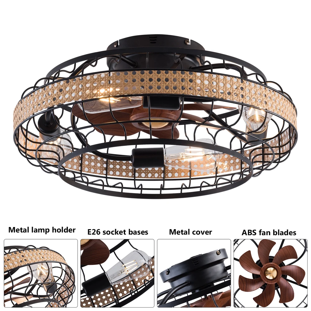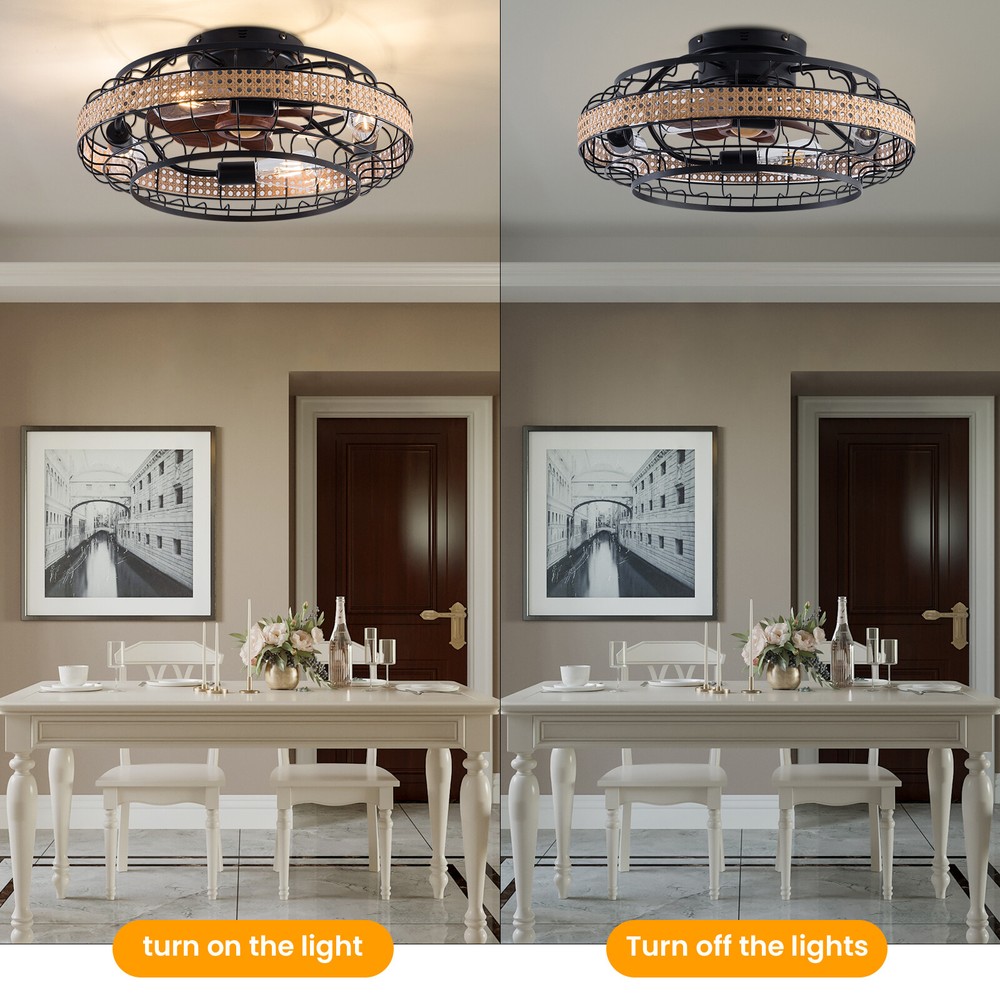 🧡🧡🧡 Welcome to Automaimaimai 🧡🧡🧡 Ceiling Fan Light Pure Copper Motor w/Control Remote living,dining room kitchen Description This ceiling fan light allows you to feel the bright light and enjoy the coolness at the same time. It has six gears of wind speeds with a timing function to meet your daily usage needs, and y ou can also reverse the direction of fan rotation in winter. It can be integrated with different decoration styles and is ideal to create an excellent life and sleep environment to accompany you in all seasons. Key Features Embrace Smart Life : With the intelligent remote control, you can freely adjust the wind speed (6th gear), lighting, and setting time (1/2/4 hour) while lying in bed within 16.4ft, avoiding catching a cold and saving electricity bills. Healthy and Energy-saving: The ceiling fan light provides more comprehensive air circulation and cooling, thereby reducing the frequency and time of air conditioning use, saving energy, and reducing expenses. It can avoid direct blowing and reduce the risk of air conditioning diseases. Build to Last: It is made of iron, ABS, and bamboo and adopts a painting and hand-woven processes, which is corrosion-resistant , strong, durable, and not easy to deform, so it can remain beautiful and practical for a long time. High Safety: Fan blades are hidden in a semi-enclosed lampshade, which can allow for unobstructed lighting and air supply to avoid accidents caused by getting caught in the blades. The multiple heat dissipation holes and wide voltage (85-265V) design can effectively ensure safety and extend product life, so you can use it with confidence. Multiple Functions: Integrating lighting and fans, illuminating the space while balancing room temperature, it has become a new choice for home fashion! You can also reverse the direction of the fan rotation in winter, blowing hot air from the top into the room and increasing the indoor temperature. Classic Appearance: Classic colors, lampshade with handmade bamboo weaving, and round shape make it eye-catching and can be a good decoration to blend in with different decor styles and add color to your room. Easy to Clean : The smooth surface and simple structure allow you to clean it with a dry cloth, saving you lots of time and effort. Excellent Gift: The beautiful appearance and good practicality make it a great gift for parents, friends, and lovers on birthdays, holidays, and housewarming. Protective Packaging: The foam can effectively reduce the normal impact and ensure that this item is fully delivered to you to the greatest extent. Guaranteed Customer Service: We aim to provide quality products and services. If you have problems, please feel free to contact us. We will reply and solve the problem for you as soon as possible. Details Round Base: The large round base with a diameter of 7.09in increases stress area, and can make the item fixed firm without falling easily. Pure Copper Motor: It has stable performance, low-temperature rise, and 35db low noise, providing a quiet working and sleeping environment. Standard Lamp Holder: The standard E26 lamp holder can support the use of LEDs, Halogens, etc., making it very convenient for you to purchase and replace. Application It is ideal for the living room, dining room, kitchen, study bedroom, small bedroom, conference room, and other places of 107.64-161.46ft² . It is also suitable for sloping ceilings. Specifications Color: Brown+Black Material: Iron, Bamboo, ABS, Copper Style: Classic Process: Painting, Hand-woven Lamp Source Type: 4* E26 Bulbs(Not Included) Motor Type: Pure Copper Motor Assembly Required: Yes Mounting Type: Ceiling Mount Number of Fan Blades: 7 Number of Items: 1 Control Method: ‎Remote, Wall Switch(Not Included) Remote Control Distance: 3-5m/ 9.84-16.4ft Voltage: 85-265V Power: 40W Battery Type: 2*AAA Batteries(Included) Wind Speed Gears: 6 Timing: 1/2/4h Efficiency: E Suitable Area: 10-15㎡/ 107.64-161.46ft² Noise: 35dB Base Diameter: 18cm/7.09in Overall Lampshade Diameter: 46cm/18.5in Lampshade Opening Diameter: 30cm/11.81in Package Included 1* Ceiling Fan Light 1* English Manual 1* Remote Control 2* AAA Batteries All Accessories for Assembly Notes For a safe and secure installation, please ensure that the electrical box is firmly mounted and properly attached to a structural part of the building. Please make sure that all wires are connected. When unpacking, be careful not to pull with the wires as a bad connection may result. Please do not turn on the power until fully assembled. We recommend installation by professionals. This product does not include a light bulb. Please prepare four E26 bulbs in advance. Please do not install the lamp next to the air conditioner or heater, which will affect the service life of the lamp. Please wear electric insulation gloves(not included) and avoid scratching the surface of the lamp plate and the electric wire when installing. Please make sure that the power supply has been cut off before installation, and conduct a power test before installation. Please use the lamp within the applicable voltage range and clean lamps regularly. Please cut off the power supply when you clean the light or replace light bulbs. Please wipe with a soft and dry cloth, it is not suitable to clean with cleaning agents and water. Please read the manual completely before installation and use, and pay particular attention to the safety instructions included. Please allow the slight color difference caused by the shooting light and 1-3cm error due to manual measurement, and make sure you do not mind before you order. Payment Delivery details Terms of sales About us Contact us Payment We accept ebay payment 。 Fees such as import duties, taxes are not included in the item price or shipping costs. These charges are the buyer's responsibility. Delivery details Shipping: 2-9 working days to: USA Terms of sales We maintain high standards of excellence and strive for hundred percent 