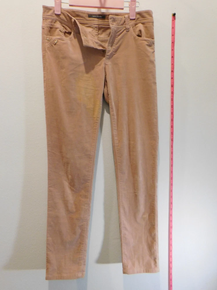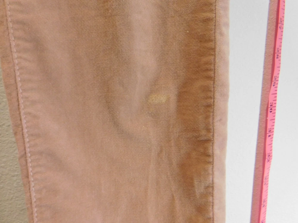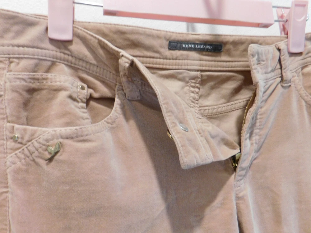 Elevate your casual style with these Rene Lezard velvet/velour pants, perfect for any occasion. The slim fit and tapered leg shape provide a flattering silhouette, while the stretch material ensures comfortable wear. The mauve color adds a touch of sophistication to any outfit, making these pants a must-have in your wardrobe. The zip closure adds a convenient touch to these stylish pants. Barely Worn 0/32 Small stain see pics. Priced accordingly