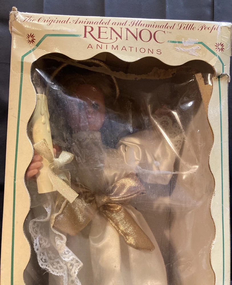 This Rennoc Animated Angel figurine measures 22” tall. The item has been tested and comes in good, clean working condition. Please note there is some staining from the angel wings on the dress and the outside box has some cosmetic imperfections and some sticker residue. Please see pictures for complete details. If you have any questions or concerns, please do not hesitate to contact us. Check out our other items and message us if interested in more than one listing as combining items could save you money on shipping. RETURNS & REFUNDS Please inspect your item as soon as it arrives. We stand by the quality of the items we sell and will issue a full refund, including shipping charges, on any defective item that is returned. Please note: photos of the item, packaging, serial numbers and/or product identifiers may be required in order to guarantee a full refund. Returns are accepted on non-defective items; however, shipping charges will be withheld from your refund.