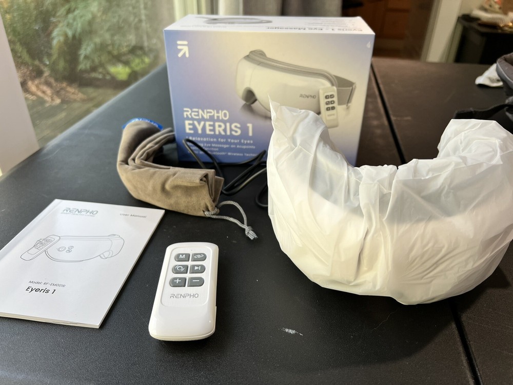 Renpho Eyeris 1 Eye Massager w/ Bluetooth Music Sound, Heated, Soothes Eyes. This item was used only a few times. My eyes are closer together than most and the massager part just didn’t fit correctly on my eyes. Nothing wrong with the product. I actually loved it. Just need something smaller. All pieces and box available.