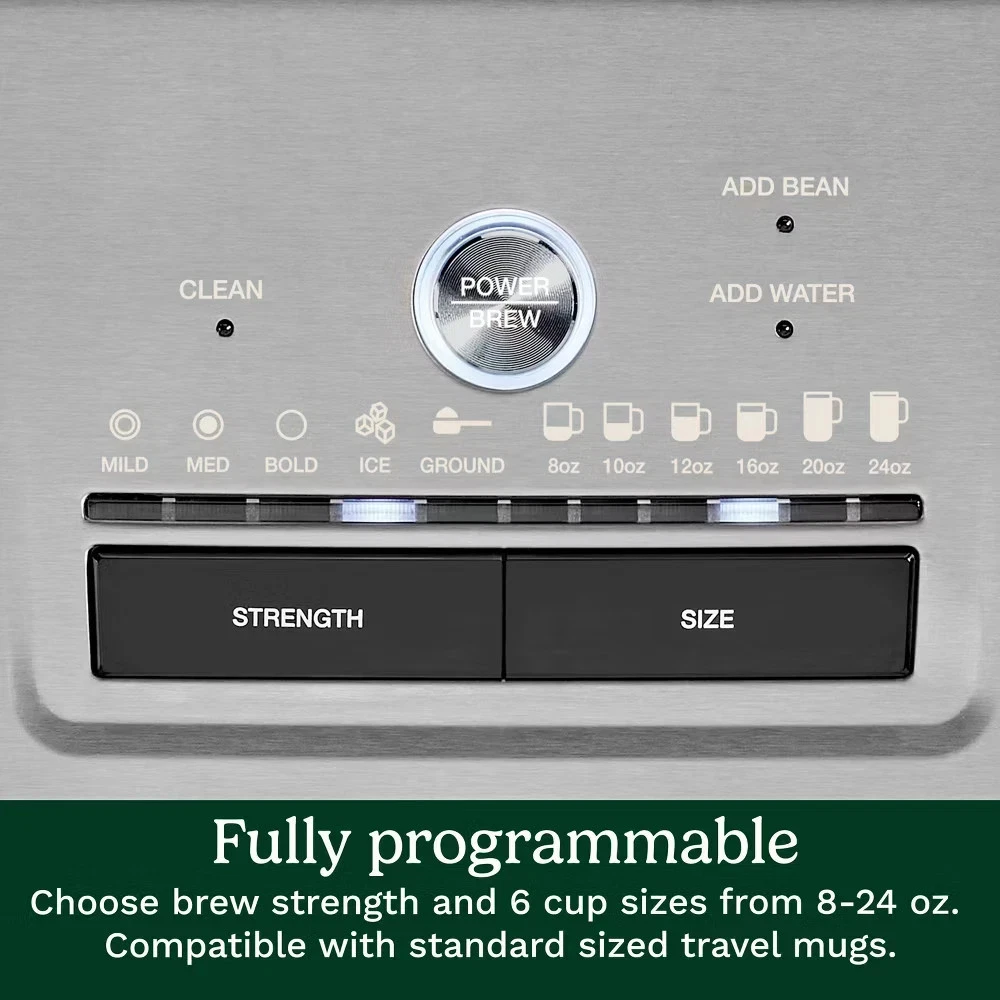 The Cuisinart Custom Grind & Brew Single-Cup Coffee Maker DGB-30 is a versatile kitchen appliance that allows you to customize your coffee brewing experience. With the ability to use whole beans or grounds, this electric coffee maker is designed for convenience and flexibility. The sleek black design and compact size make it a stylish addition to any kitchen, while the single-cup capacity ensures a fresh and delicious cup of coffee every time. Enjoy barista-quality coffee in the comfort of your own home with this Cuisinart coffee maker. Item is used in good condition. Item #148