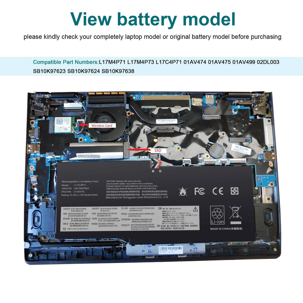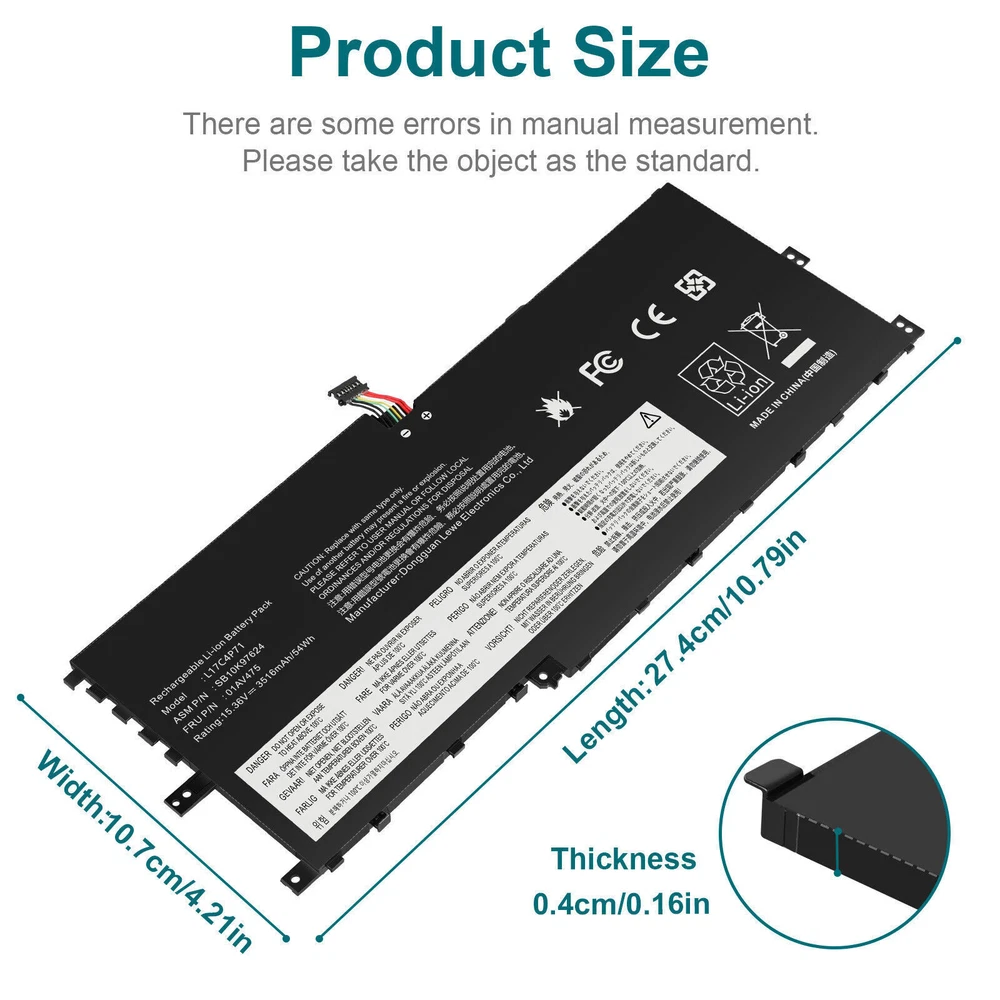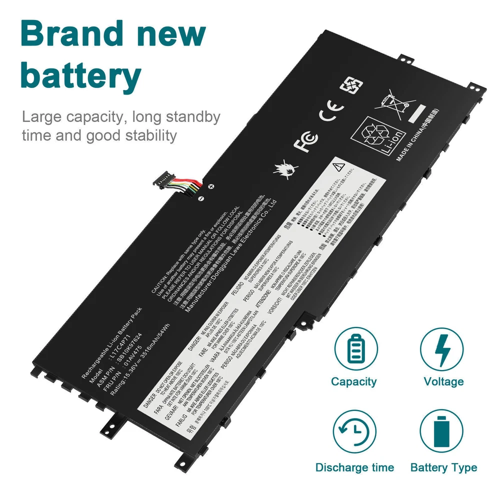 MPN: Does not apply Number of Battery Cells: 4 Compatible Product Line: For Lenovo ThinkPad Color: Black Brand: chargeyourlife Item Height: 0.4cm/0.16in Compatible Brand: For Lenovo Item Length: 27.4cm/10.79in Compatible Part Numbers 2: L17M4P73, 01AV499, SB10K97638 02DL003 Compatible Model: For Lenovo ThinkPad X1 Yoga 2018, Lenovo ThinkPad X1 Yoga Gen 3 Item Width: 10.7cm/4.21in Type: AC & DC Compatible Part Numbers: L17C4P71, 01AV475, SB10K97624 L17M4P71, 01AV474, SB10K97623 Battery Type: Li-Ion Voltage: 15.36V Battery Capacity: 54Wh