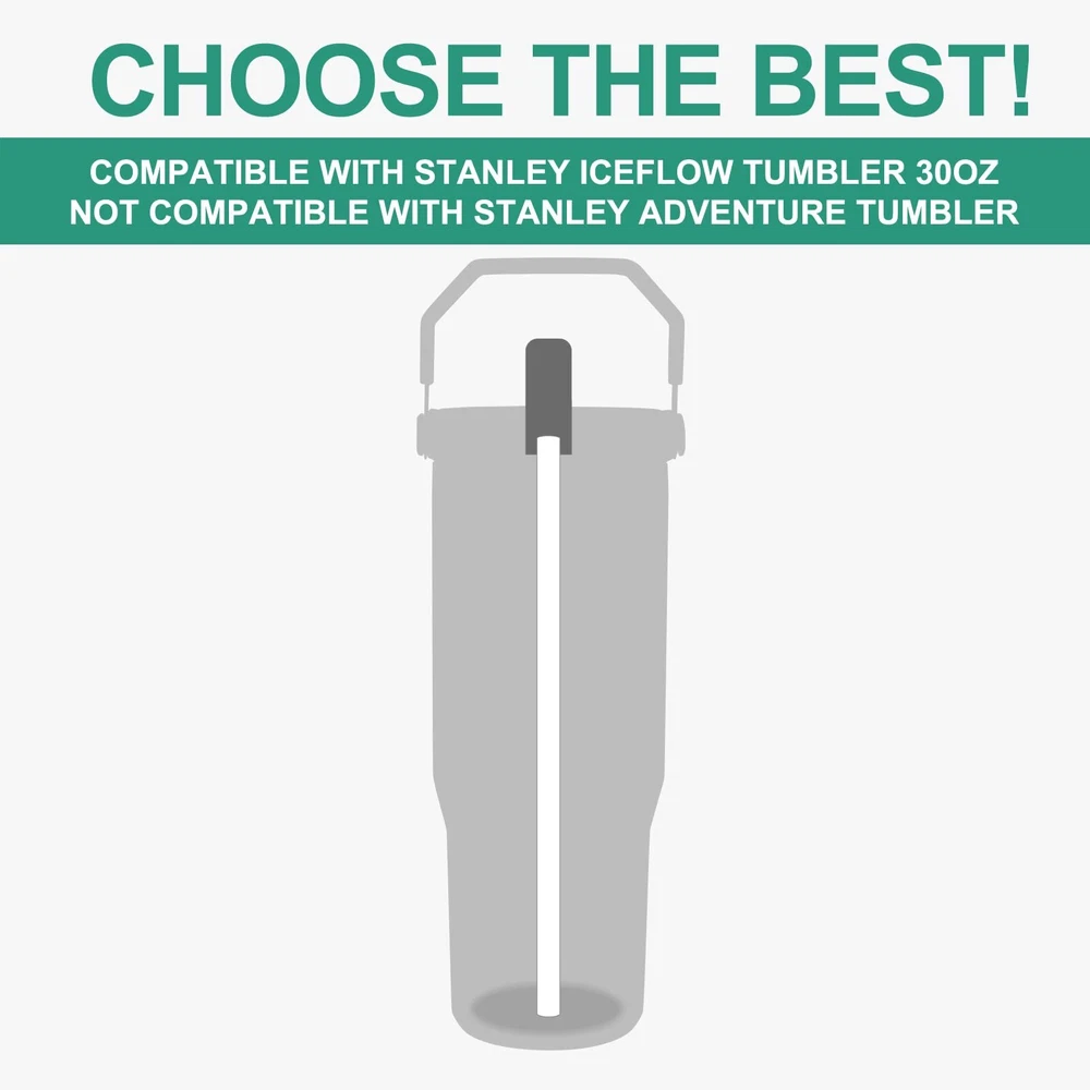 Replacement Straws for IceFlow Stainless Steel Tumbler, 8 Pack Reusable Straws Plastic Straws with Cleaning Brush Compatible with Stanley IceFlow 30oz Tumbler Stanley Flip Straw Tumbler The pacakge including 8* Reusable Straws and 1* Easy-to-use cleaning brush compatible with Stanley IceFlow Stainless Steel Tumbler 30oz. It may not fits for other brand and other size tumbler, please confirm before buying!(They are compatible with the 'iceflow' series and not with the 'quencher' stainless steel tumbler with handle) All reusable straws provide sufficient length compatible with Stanley IceFlow Tumbler 30oz, Stanley Flip Straw Tumbler. If you want to use reusable glass straws for other model cups, please confirm carefully first! Every straw for Stanley tumber made of food-grade plastic as the prototype, BPA-free, odorless, reusable, and durable, could be daily used for Stanley IceFlow Stainless Steel Tumblers in peace of mind. The cleaning brush is long enough to help you clean the straw with ease. Shipping We offer FREE shipping on all orders! We ship within Three business days of payment, usually sooner. We use a selection of shipping services such as UPS, FedEx, USPS etc. We only ship to the lower 48 states, no APO/FPO addresses or PO Boxes allowed. Local pickups and combined shipping options are not provided at this time. Return You can return a product for up to 30 days from the date you purchased it. Any product you return must be in the same condition you received it and in the original packaging. Please keep the receipt. Payment We accept payment by any of the following methods: PayPal Please pay as soon as possible after winning an auction, as that will allow us to post your item to you sooner! Feedback Customer satisfaction is very important to us. If you have any problem with your order, please contact us and we will do our best to make you satisfied. Contact Us If you have any queries, please contact us via ebay. We usually respond within 24 hours on weekdays. Please visit our eBay store to check out other items for sale! Thank you for shopping at our store.