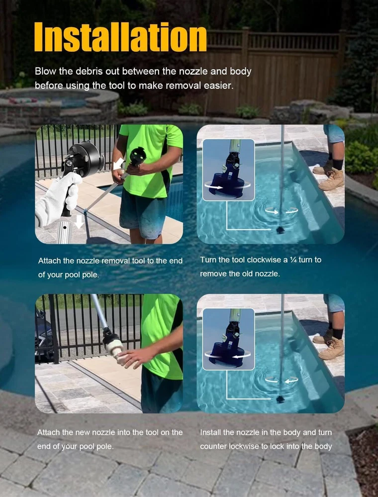 Replaces for PCC2000 Rotating Head Nozzle for PCC2000 in-Floor Cleaning System Great Compatibility — PCC2000 Rotating Head Nozzle replaces for Paramount PCC2000 In-floor Cleaning System. Designed for all pool size and shape. Package includes nozzle and O-ring. Perfect Design — PCC2000 rotating nozzle head will work together and automatically distributes water to cleans your entire pool, including walls, floors, steps, benches and spas. Direct replacement for damaged or worn out nozzles to make the system operate at peak performance. Easy & Fast Installation — It takes a breeze to install. Simply attach the nozzle tool to the end of pool pole and insert into the nozzle slots. Turn the tool clockwise a ¼ turn to unlock the nozzle and then lift it from the body in the floor of the pool. Replace with new nozzle and O-ring. Turn counter clockwise to lock into the body. Superior Quality — Manufactured from marine-grade CNC machined solid, injection molded ABS, strength and durability, anti-impact and anti-deformation, anti-corrosion and aging resistance, never peel, fade or leak for all-weather performance and long-lasting reliability. Package Content — 1pc PCC2000 Rotating Head Nozzle. Satisfaction Guarantee — Your satisfaction is our priority. We strive to give our customers excellent service. Support 60-Day money-back guarantee, 12-Month warranty for quality-related issues. Please feel free to contact us. Payment Shipping Returns Contact us Payment 1. Payment methods accepted: Payoneer . Our Payoneer account allows you to pay by credit card, debit card and your paypal balance. 2. All major credit cards are accepted through our secure payment processor Payoneer. 3. We ship items to Your Ebay address.Please make sure your Ebay address is correct before you pay, cause it cannot be changed once the order shipped out. Shipping 1. Item will be shipped out within 1-2 business day after clear payment received. 2. Please make sure shipping address on your Ebay account is correct & up-to-date. 3. All of our items are shipped from our US warehouse. 4. Please feel free to contact us by email if you cannot get your order in time. Please read the shipment and payment detail carefully before you bid. Returns 1. Return to us within 60 days from the delivery date for exchange or refund. Refund will be given as Money back or item exchange (buyer's choice). 2. Return shipping fee is the responsibility of buyer unless the return is a result of our mistake. 3. If you need return, please contact our customer service representative, let us know the detailed problem and send us some pictures for confirmation. Contact us Please contact us via ebay using"Contact member". We will respond within 1 business day or less.Thank you for your understanding.