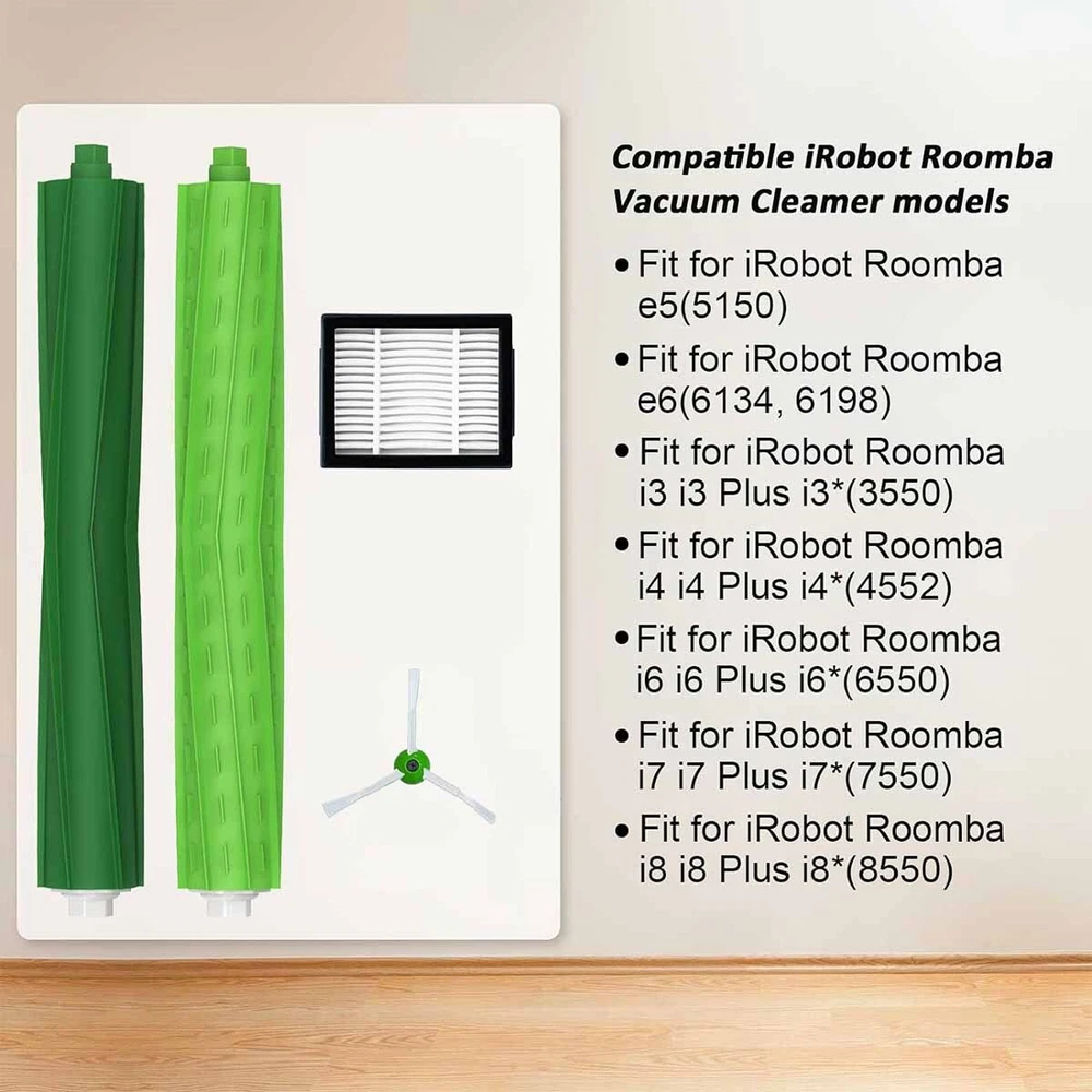 Product Details: Compatible with iRobot Roomba i7 i7+/i7 Plus E5 E6 E7 Vacuum Cleaner Side Brush & Hepa Filters & Bristle Brush. High Performance: Brushes can capture a variety of debris, easy to remove dirt, dust and hair. Ideal for homes with pets. Filter can maintain vacuum 's cleaning performance while reducing infiltration of dust. Features: - Easy to install and disassemble, because our replacement parts are well compatible with your vacuum robot, the installation method is the same as the original, you can easily install and use - Maintenance time, according to your use frequency, replace the consumable supplement kit every 2-3 months, so that your robot can maintain the best performance Package Includes: 1 x Set Rubber Brush 4 x Side Brush 3 x Filters 4 x Screws On Sep 29, 2024 at 19:09:52 PDT, seller added the following information: