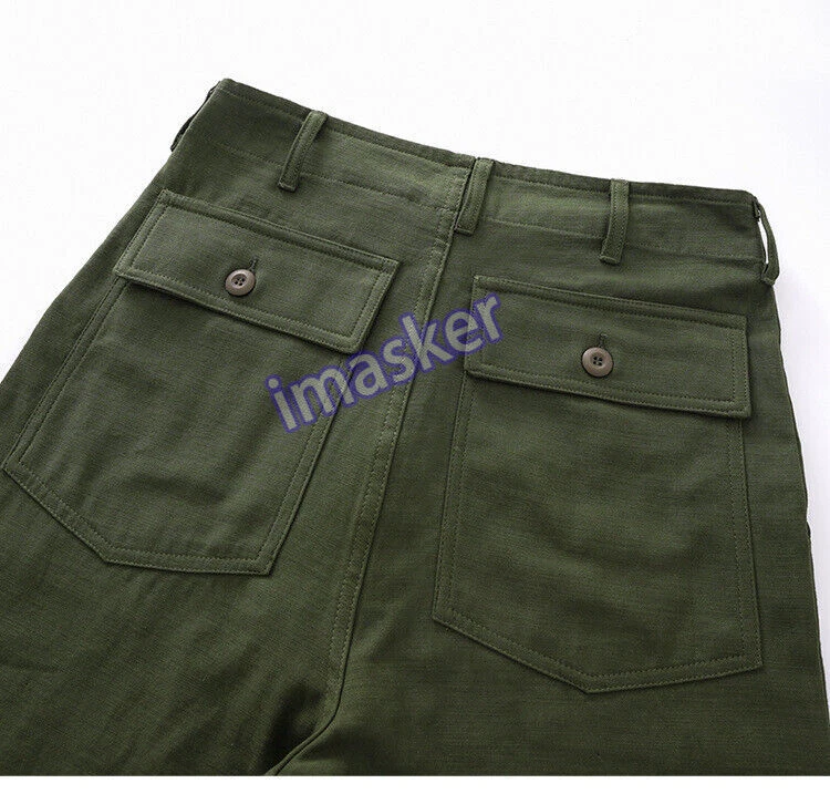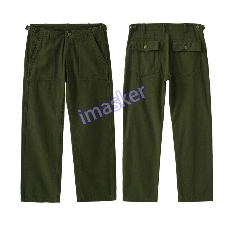Replica Military OG-107 Fatigue Utility Pants Army HBT Olive Green Trousers Feature: Brand new & Top qu ality Fabric: High grade 11.6oz sateen cotton,The fabric is stiff and shaped Wasit: Mid-high waist Loose straight pants Note: The size is Asian size ,To be safe,Please measure one of your own Pants to make comparison with ours, so as to select a correct size.Please measure yourself before ordering,contact us if you are not sure. Size Chart:1inch=2.54cm Size Chart : INCH/CM Tag Size Waist Length Hip Leg opening inch cm inch cm inch cm inch cm 30 28.3 72 40.7 103.5 39.8 101 18.1 46 32 30.7 78 41.5 105.5 42.1 107 18.1 46 34 33.1 84 42.3 107.5 44.5 113 18.5 47 36 35.4 90 43.1 109.5 46.9 119 18.5 47 38 37.8 96 43.9 111.5 49.2 125 22.8 58 SIZE ERROR: ±1 INCH error as size was measured by hand. Payment 1. We accept PAYPAL only. 2. Payment must be made within 7 days of auction closing (Unpaid dispute will automatically open when item is not paid in 7 days). 3. PLEASE NOTE: SHIPPING&HANDING DOES NOT INCLUDE DUTIES, LOCATL TAXES OR ANY OTHER IMPORTATION FEES. 4. Please list your special requests (color, packages, value of declaration, etc.) in the EBAY NOTES SECTION when you make payment Shipping 1. We Ship to Worldwide 2. We ship your orders within 1-2 business days after the payment cleared. 3. Item shipped from China via china Post Airmail, reach most of the countries within 2 to 4 weeks. 4. Delivery time depends on destination and other factors, it may takes up to 20 days. If you don't receive the item after 25 days,please contact us, we'll investigate and solve the delivery problem. 5. Import duties, taxes, and charges are not included in the item price or shipping cost. These charges are the buyer's responsibility. Please check with your country's customs office to determine what these additional costs will be prior to bidding or buying. Warranty Return 1. Customer satisfaction is our top goal. All products are quality checked. They are new and in good condition when shipped to our customers. If product is defective or damage upon arrival, or wrong product shipped, please contact us immediately. Returns accepted within 14 days of delivery date and item must be in original new condition, not worn or altered in any way with attached tags & wrap. Otherwise deal is final. Return shipping must be paid by buyer. 2. Please contact us first if you have anyproblems/questions/concerns. We will be happy to resolve any issues you may have in a cordial and friendly manner. 3. We appreciate your Positive Feedback, and will do the same in return. PLEASE DO NOT leave negative feedback without first communication with us. Please allow max 24 HOURS for us to respond About Feedback We maintain high standards of excellence and strive for 100% customer satisfaction! Feedback is very important to us. We request that you contact us immediately BEFORE you give us neutral or negative feedback, so that we can satisfactorily address your concerns.It is impossible to address issues if we do not know about them! Contact Us We care about our valued customers, if you have any questions, please feel free to contact us in EBAY MESSAGE, our Customer Service staffs will be very pleasure to reply you in 24 Hours.