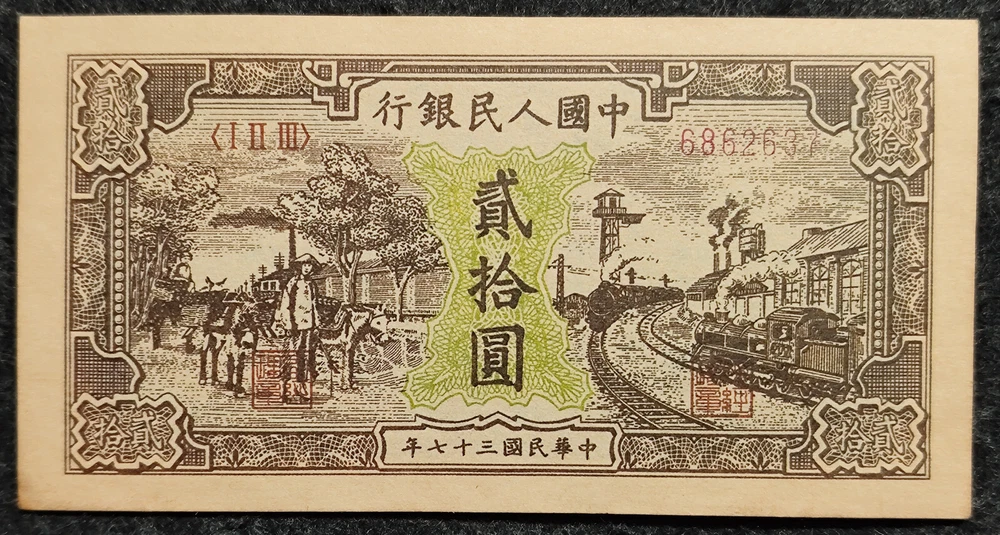 Republic China 37Year The People's Bank of China 1948 Issued 20Yuan Paper Money