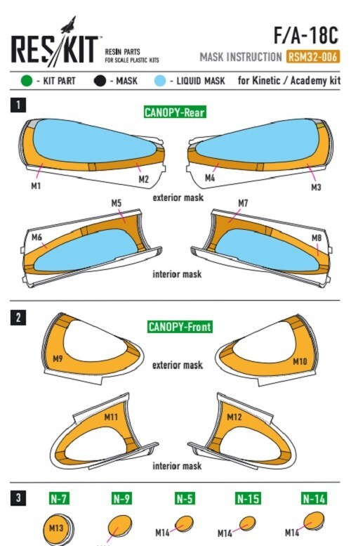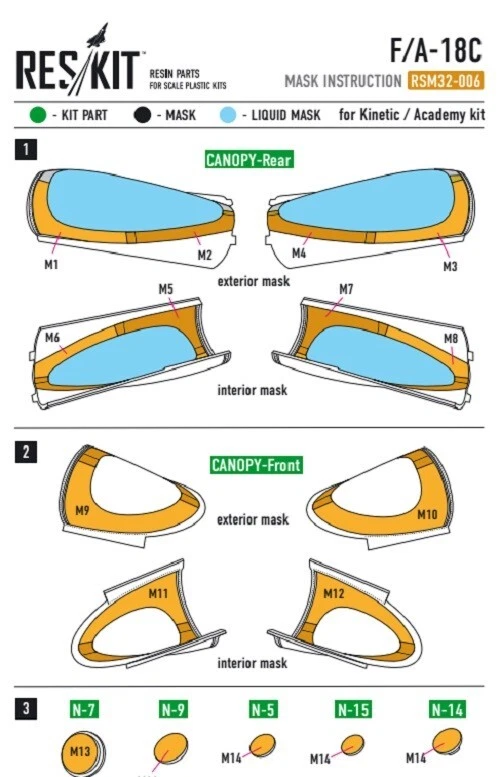 ResKit RSM32-0006 1:32 Scale F/A-18C Hornet Pre-Cut Paint Masks for Kinetic Academy Model