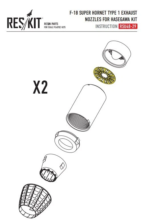 Scale: 1:48 Manufacturer: RESKIT Country/Region of Manufacture: Ukraine High-quality details. Paint: Unpainted, Unassembled, Kit do not contain paints and glue. Condition: New in Box Features: Kit 1:48 F-18 Super Hornet Type 1 Exhaust Nozzles for Hasegawa kit Type of product: Exhaust nozzles Recommended kits: Hasegawa Kit Suitable for models: F-18, HORNET, F18, HORNET, ХОРНЕТ, F/A-18, MCDONNELL DOUGLAS, BOEING, SUPER HORNET, EA-18G, GROWLER Quality set, simple assembly. Suitable for experienced modelers, as well as for beginners. Due to the use of modern production technologies, all the details of the model fit perfectly, thanks to this, you can get an excellent result with minimal effort. ----------- This is a plastic model kit. Assembly and painting is required. Paint and glue is NOT included. Item Type: Scale model kit Commodity Attribute: Assembly The model is a plastic assembly model and needs to be assembled and painted by yourself You need an extra purchase of the glue, paint and so on!