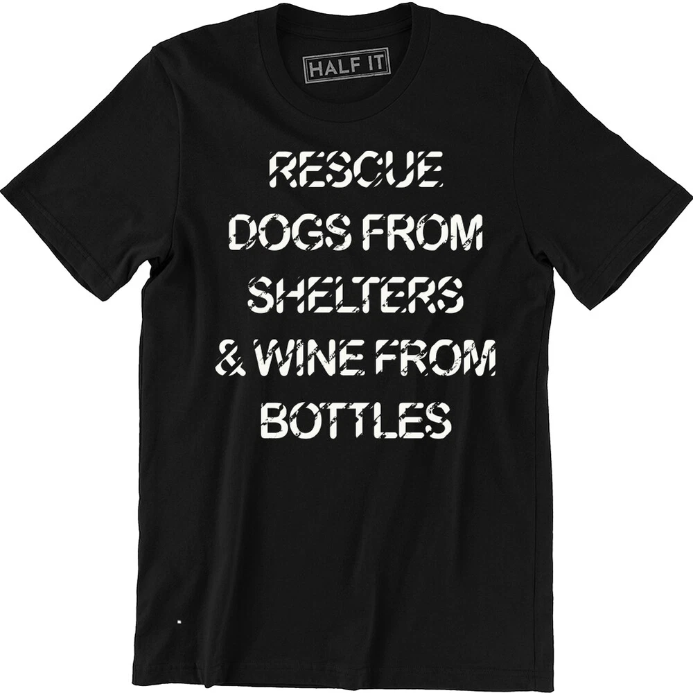 Rescue Dogs From Shelters & Wine From Bottles Shirt Funny Slogan Saying Tee