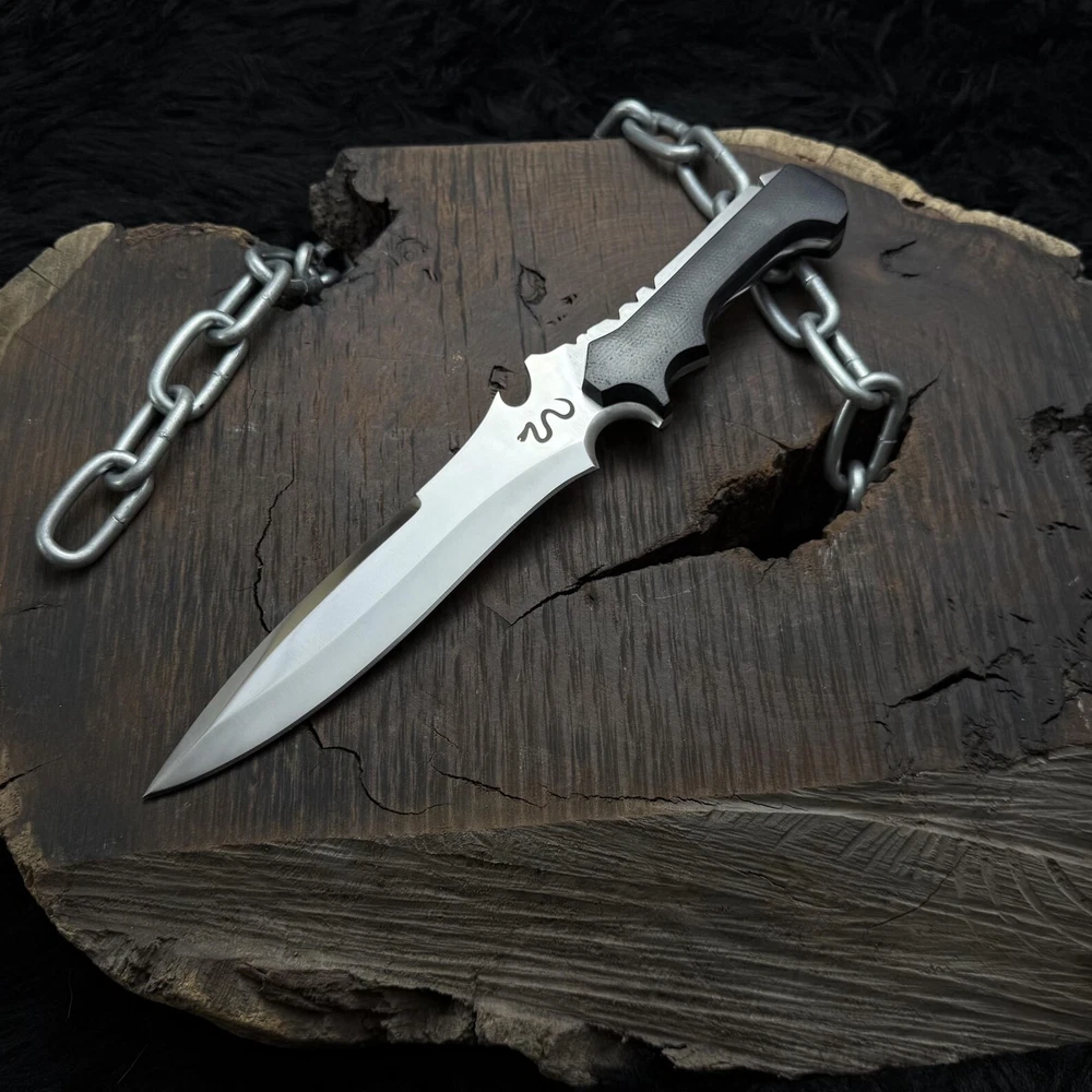 Resident Evil 4:Remake Jack Krauser Replica Knife | Gaming prop | Custom Hunting Knife | Gift for him | Gift for Colleagues | Birthday Gifts | Gift for husband | Personalized gifts | Razor sharp | Full tang blade | Micarta handle | high polished d2 steel | Anniversary Gifts | Men's gift | Father's day gifts | Outdoor camping | Custom knives | Leon kennedy knife | Resident evil collectibles | Famous game replica | Cosplay knives | Cosplay gears | Meat cut | Sharp knives | Best knives | Unique gifts Dimensions & Measurements: Overall Length: 15” Blade Length: 10” Handle Length: 5” Materials: Blade Material: carbon Steel. Handle Material: Black Micarta Leather Sheath: Premium Leather Sheath will be provided. The Resident Evil Jack Krauser Replica Knife from The Titans Edge is a stunning tribute to the iconic weapon used by the infamous character in the Resident Evil series. This meticulously crafted knife features a distinctive, robust blade designed for both durability and style, capturing the essence of Krauser's fierce persona. Made from high-quality materials, this replica knife is perfect for collectors and fans of the franchise.