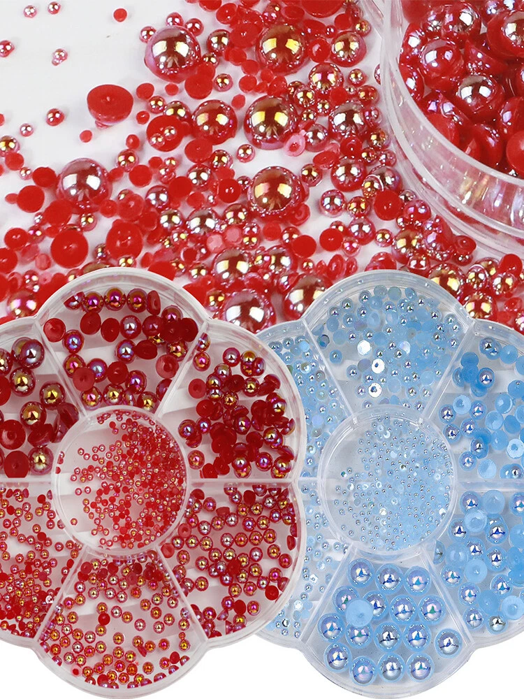 100% Brand New and high quality. Used as nail accessories, ornaments, nail DIY art. Perfect for both professional use and personal use Material: Plastic,Resin Color: Colorful As Show Pearls Size: 1.5-6mm Box Size:10.3*10.3*1.8cm (1 inch =25.4mm or 1mm = 0.0393 inch) Package Includes: 1 box Mix Size Half Round Colorful AB Pearl Feature: New retail and high quality. Used as nail accessories, ornaments, nail DIY art. Perfect for both professional use and personal use How to use: Step 1: Apply a layer of base gel and cure it. Step 2: Apply a layer of your favorite nail gel color and cure it. Step 3: Apply glue to the nail surface for decoration. Step 4: Put the accessories in the right place. Step 5: Apply top coat and cure it. Gentle Tips: 1.If redness or other signs of adverse reaction occur, discontinue use immediately.(show the label whenever possible) 2.Keep tightly sealed. Keep out of sunlight. Keep out of reach of children.