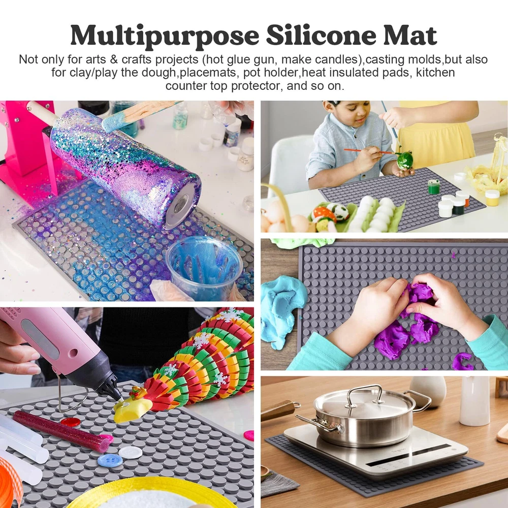 Resin Collector Mat Easy to Collect Resin and Clean: resin collector mat is designed with special round dots, easy to clean the spilled resin. You can easily peel off the cured resin from the gaps, easy and fun, and can relieve your . In addition, the collected residue resin can be recycled to make new projects, turning waste into crafts and providing new ideas for your resin craft. It is also the main source of creativity for your resin art. Perfect Crafts Mat: Not only suitable for making various small projects but also as a storage area for resin tools when collecting resin dripping from resin tools during work (such as a cup turner, resin mixing paddle, etc.). It is large enough to serve as a tool collection pad for you. It can not only be used for resin, glue, shine glitter, handicraft projects (hot glue , making candles), casting molds, but also for clay, and plasticine. Thickened Anti-slip Mat for Kitchen: Made of high-quality food-silicone materials, it is tear-resistant, durable, and can be used for a long time. It is and can withstand a temperature range of -40°F-392°F(-40°-200°C), which can be widely used in the kitchen. Both surfaces have strong friction and do not slip, which can be used as a dish drying mat, spoon rest, pot holder, placemats, heat insulated pads, jar opener, garlic peeler, kitchen countertops,etc. Easy to & Soft Materials: Our silicone craft mat is made of very soft high-quality silicone material, which is soft and elastic, so it can be easily rolled or folded up, or can be hung on a hook. It can easily save your storage space and is easy to carry. The classic and elegant gray color can be matched with your kitchen or decorative items. Why Choose Us: With years of experience in epoxy resin, is committed to providing craft enthusiasts with tools and materials to turn imagination into reality. Strictly control product quality and attach great importance to the consumer experience. For the best use, please read the manual carefully before use. If you have any problems, please us. We will do our best to solve it for you.