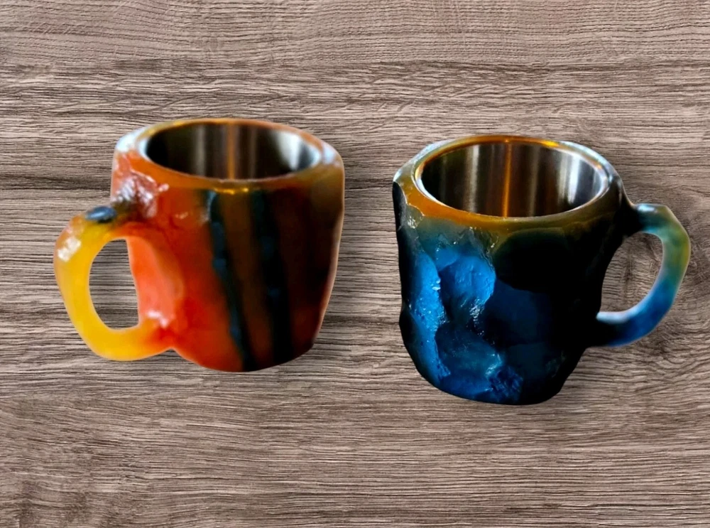 Upgrade your morning routine with this set of two Resin Mineral Crystal Coffee Mugs. Crafted with acrylic material, these mugs are designed to keep your hot beverages warm for a long time with its double-walled feature. The geometric pattern and art deco style make these mugs perfect for any occasion. Each mug has a capacity of 6.76 oz and features a comfortable handle for easy sipping. These mugs are also spill-proof and break/chip-resistant, making them perfect for everyday use. The multicolor design adds a pop of color to your kitchen collection. Give yourself a treat and add this stunning set of coffee mugs to your collection today!