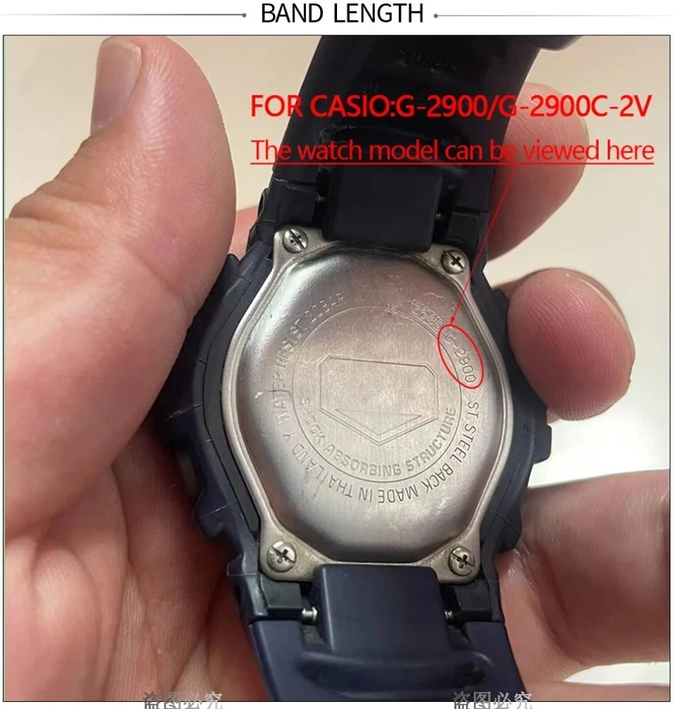 eBay Product Listing Resin Replacement Watchband Suitable for Casio G-2900 Rubber Bracelet Product Description Upgrade your watch with this durable and sporty replacement rubber bracelet, designed specifically for models like the G-2900F. This waterproof wristband is ideal for both men and women, featuring a secure pin buckle and hypoallergenic stainless steel material for comfort and style. Specifications Clasp Type: Pin Buckle Band Length: 21cm Band Material: Waterproof Rubber Item Type: Watchbands Buckle Material: Non-allergenic silver/black stainless steel Key Features Waterproof Design : Perfect for sports and outdoor activities. Durable Material : High-quality rubber strap offers long-lasting performance. Secure Fit : Pin buckle ensures reliable fastening for daily use. Stylish Look : Sleek design suitable for men and women. Notes Please allow 1-3cm error due to manual measurement. Colors may slightly vary due to different lighting conditions. Ensure accurate measurements before purchasing. Package Includes Selected Variation Explore More from Our Store Visit Store