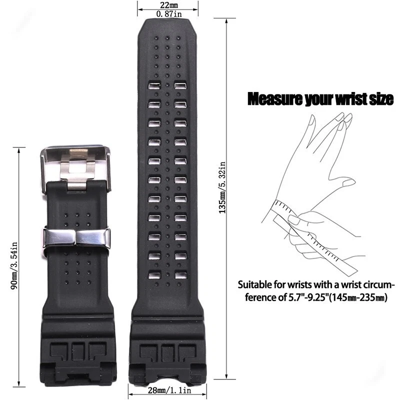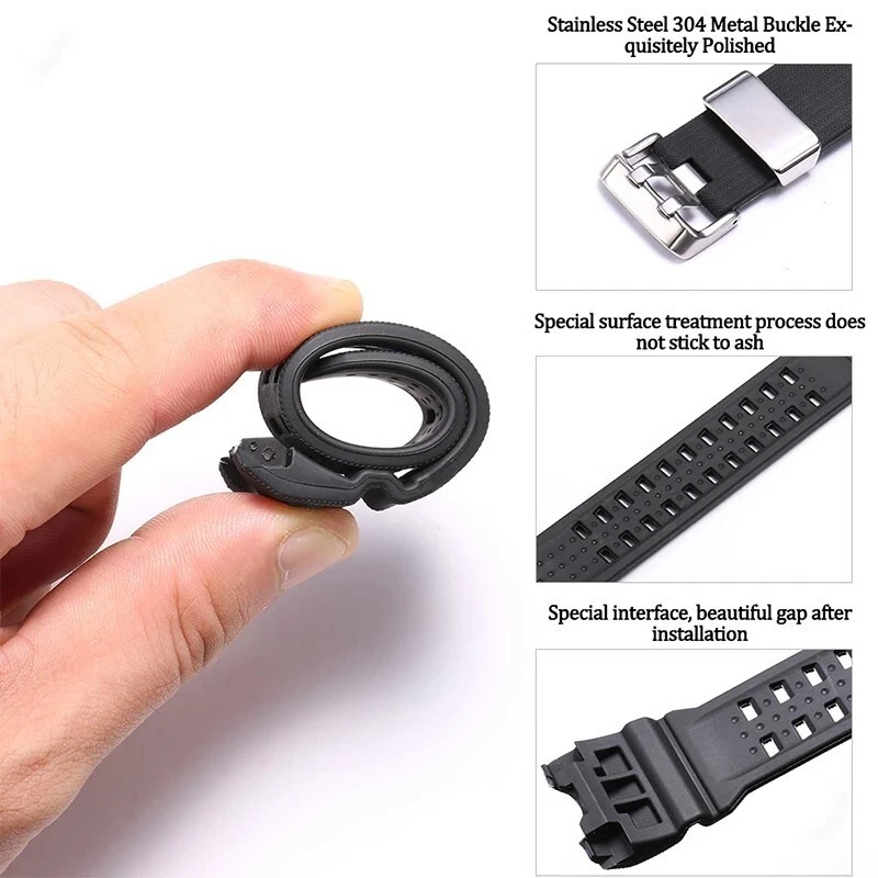 eBay Product Listing Resin Watch Band Men's Sports Waterproof Strap Wristband for GShock GWG1000 Specifications Clasp Type: Pin Buckle Band Length: 21cm Band Material Type: Rubber (Resin) Item Type: Watchbands Buckle Material: Fine Steel Key Features Rugged Resin Material: Built for durability, designed to withstand outdoor and sports activities. Comfortable Fit: Lightweight yet sturdy for long-term wear. Waterproof Design: Perfect for swimming, hiking, and other outdoor adventures. Secure Pin Buckle Closure: Ensures a snug fit with a fine steel buckle for enhanced durability. Notes Please allow 1-3cm error due to manual measurement. Colors may slightly vary due to different lighting conditions. Ensure accurate measurements before purchasing. Package Includes Selected Variation Explore More from Our Store Visit Store