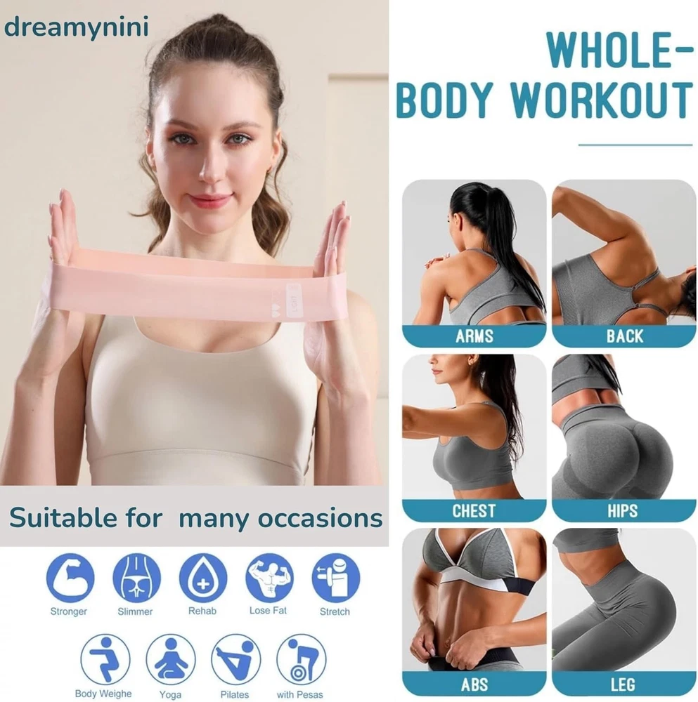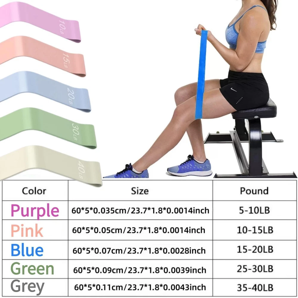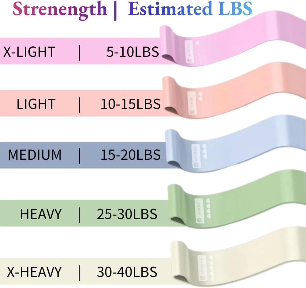 5 Level Resistance Bands(10-40 LB): You will get a set of 5pcs exercise bands for working out including 5 colors,each stretch strength (color) is suitable for different exercise levels and different exercise purposes. Anytime to help exercise most body parts (hips, arms, chest, legs and upper back), whether you are a beginner or an experienced fitness professional, everyone can get the right. Skin-Friendly & Strong Durable: Our exercise bands resistance is 59 inches long and 5.9 inches wide, made of sturdy and durable natural latex,high elasticity, not easy to deform, durable and not easy to break,harmless to the skin, no pungent smell,prevent static electricity, can maintain long-term elasticity, not easy to break. Suitable for Any Workout: Increasing muscle strength & physical therapy. Stretch bands for exercise can be used to increase muscle strength using the workout equipment can help patients perform basic exercises, such as stretching,which can increase joint flexibility and range of motion. And assisting specific muscle groups for training, improve your health at the same time. Wide Application & All Ages: Suitable for athletes, exercisers, the elderly, rehabilitation trainers, the home gym equipment resistance bands for women and men are often used for sports and fitness, and physical therapists love these physical therapy bands (rehab bands) to help them rehabilitate their patients. Our stretch bands work for people suffering from leg, knee and back injuries. They are also perfect for use by women after pregnancy and birth to keep their bodies in shape. 5 Level Resistance Bands(10-40 LB): You will get a set of 5pcs exercise bands for working out including 5 colors,each stretch strength (color) is suitable for different exercise levels and different exercise purposes. Anytime to help exercise most body parts (hips, arms, chest, legs and upper back), whether you are a beginner or an experienced fitness professional, everyone can get the right. Skin-Friendly & Strong Durable: Our exercise bands resistance is 59 inches long and 5.9 inches wide, made of sturdy and durable natural latex,high elasticity,not easy to deform, durable and not easy to break,harmless to the skin,no pungent smell,prevent static electricity,can maintain long-term elasticity, not easy to break. Suitable for Any Workout: Increasing muscle strength & physical therapy. Stretch bands for exercise can be used to increase muscle strength Using the workout equipment can help patients perform basic exercises, such as stretching,which can increase joint flexibility and range of motion. and assisting specific muscle groups for training,improve your health at the same time. Wide Application & All Ages: Suitable for athletes, exercisers, the elderly, rehabilitation trainers, the home gym equipment resistance bands for women and men are often used for sports and fitness,and physical therapists love these physical therapy bands (rehab bands) to help them rehabilitate their patients.Our stretch bands work for people suffering from leg, knee and back injuries. They are also perfect for use by women after pregnancy and birth to keep their bodies in shape.