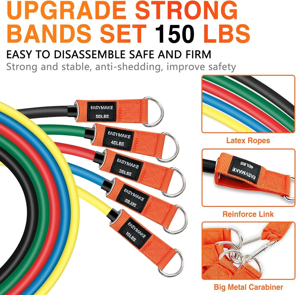 Store New Arrivals Add to Favorite View Feedback Contact Fast deliveries to the customer's home Quality customer service John Make the customers happy! Resistance Bands, Exercise Bands with Handles, Door Anchor, Legs Ankle Straps, 150/240/300/360LBS Workout Bands for Men and Women Fitness, Heavy Resistance Training, Home Workout Set Description Let's Start Exercising Now: Struggling with body shape or envying a toned physique? Our fitness resistance bands are the best choice. Save on costly gym memberships and equipment. Achieve your fitness goals affordably. Get ready to burn and build muscle Upgrade Resistance Band Set: Our set includes 5 bands in colors with resistance levels of 10 lbs, 20 lbs, 30 lbs, 40 lbs, and 50 lbs. Each 39" band supports up to 150 lbs. Adjust resistance easily for versatile exercises, perfect for any workout Multifunctional for Workout: This resistance bands set is perfect for yoga, pilates, stretching, fitness, and more. exercising your arms, legs, buttocks, waist, neck and back. Comes with door anchors, handles and ankle straps to enrich your workout Portable and Easy To Store: The resistance band suit is easy to carry and comes with a travel bag for you. Whether at home, in the gym, or when traveling, you can continue to use it for exercise anytime, anywhere Quality Materials: Our workout bands use natural latex and high density nylon webbing for durability and elasticity. Features include strong steel metal clasps, non slip, comfortable handles, and thick, soft door anchors. All accessories are top quality What You Can Get: The resistance band set includes 5 sports bands with different resistances, 1 door anchor, 2 sturdy handles, 2 comfortable ankle straps, 1 workout guide, 1 carrying bag. EASYMAKE offers a one year warranty for your peace of mind Product Description EASYMAKE Resistance Bands Set The video showcases the product in use. The video guides you through product setup. The video compares multiple products. The video shows the product being unpacked. Upgraded EASYMAKE Resistance Band - Perfectly Private Set for Fitness. The resistance band set comes in 4 sizes 150LBS, 240LBS, 300LBS, 360LBS. each size has 5 different resistance levels, every workout is different and every muscle has different needs. Find the perfect resistance for any workout so you can clearly feel your muscles building after every stretch. Natural Latex Elasticity Our workout band sets are made of upgraded latex, enduring and elastic, stackable, non-irritating and odourless, not cheap and easy to break latex silk. Portable Carrying Bag Carefully crafted carry bag to better protect the resistance band set! At compact package size 10 x 11.3 inches easy to carry, store and Transport. Bring your resistance bands with you. More Option Add to Cart Add to Cart Add to Cart Add to Cart Customer Reviews 4.5 out of 5 stars 443 4.5 out of 5 stars 443 4.5 out of 5 stars 443 4.5 out of 5 stars 443 Price $16.98 $ 16 . 98 $22.98 $ 22 . 98 $28.99 $ 28 . 99 $32.98 $ 32 . 98 Full Body Workout ✔ ✔ ✔ ✔ Sport Type Gain Muscles and S-curve Body Arm Leg Chest Back ABS etc abdomen, back and buttocks. Gain Muscle, Strong Muscles Exercise Efficacy For full-body stretching aide For Physical therapy Muscle Training Strength Training Resistance Levels 10 - 150 LBS 10 - 240 LBS 40 - 300 LBS 40 - 360 LBS Material Latex Latex Latex Latex Users Men & Women Men & Women Men & Women Men & Women Item Weight 0.74 Kilograms Sport Physiotherapy, Exercise and Fitness, Pilates, Body Building, Strength Training Color 150LBS Number of Resistance Levels 150 Material Natural Rubber Material Type Natural Rubber Sport Type Physiotherapy, Exercise and Fitness, Pilates, Body Building, Strength Training Tension Supported 10~150LBS Recommended Uses For Product Workout Included Components 5* Resistance band,‎2*Handle, 1*Door Anchor, 2*Legs Ankle Straps, 1*Workout Guide, 1*Carry Bag Additional Features Stackable, Adjustable, Built-In Handle ABOUT US We offer the best prices around on high quality products. Our E-store includes media such as books, movies, music and games while offering electronics, toys, sporting apparel, clothing, tools, general home, garden items and more. SHIPPING We are always working hard to ensure your package arrives as soon as possible. Please understand that some factors like weather, high postal traffic, and the performance of shipping companies are outside of our control. We offer free shipping to the lower 48 states and ship within 2 business days of payment, usually sooner. We do not accept P.O. Boxes. Please provide a physical address. For shipping outside of the continental USA, we only use eBay's Global Shipping Program. The item is shipped to KY and then sent to the rest of the world. International customers are responsible for all duties and taxes. Continue to 'check out' to calculate costs for shipping the item to your country. Messages regarding eBay's Global Shipping Program MUST be directed at eBay EXCLUSIVELY. RETURNS We offer a 30-Day Return Policy on items in which you are not completely satisfied with. You have the option of a full-refund or an exchange of the item. No returns are available on items shipped outside of the USA PAYMENT We accept PayPal. CONTACT US This page content is yet to come Please ad us to your favorite seller and visit again later Thank You CUSTOMER SATISFACTION We try our very best to make sure every customer is completely satisfied. If there's a problem, message us! We're happy to help. WE ACCEPT