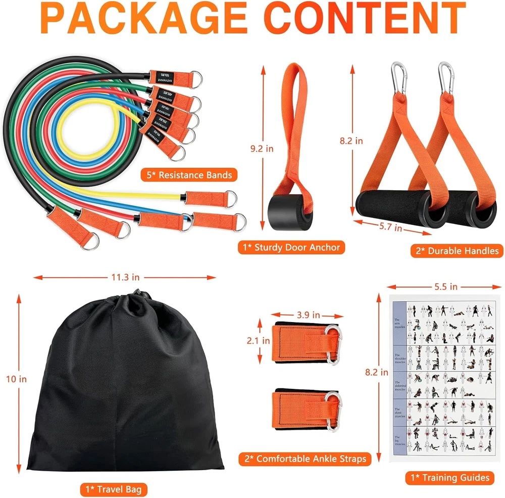 Resistance Bands, Exercise Bands with Handles, Door Anchor, Legs Ankle Straps, 1