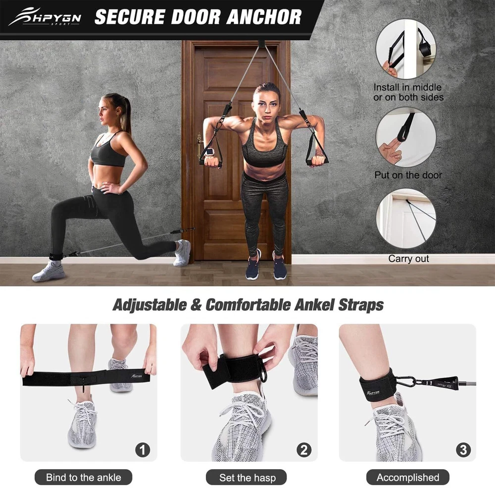 đȘThe Resistance Bands Set are ideal for Strength training Physical therapy Home workouts Body shaping Weight loss. â€YOUR PERSONAL HOME GYM â Got no time to head down to your local gym every day? With this set of resistance bands, you can enjoy a full body workout without even stepping out of your home. â€TRAIN DIFFERENT MUSCLE GROUPS â Use these fitness bands to perform rows, pulls, raises, and fly workout sets to exercise your arms, back, hips, legs, chest, and abdominal region. You can use resistance bands to replace dumbbells or weights. â¶New upgrade Strong rubber bands provide consistent resistance for every movement and give you enough flexibility to do hundreds of different exercises from beginner level through advanced. Virtually guarantees you'll never grow bored of your workouts. â¶The Resistance Bands Set can be integrated seamlessly to improve your muscular endurance, strength, balance, flexibility, body awareness and co-ordination. â¶Apart from body building and fat burning, the fitness set is also useful for injury rehabilitation, perfect for beginners to experts. â¶The foam handles are made of anti-slip, sweat absorbing material for a comfortable frip. The door anchor turns your door into your own gym in seconds. â¶At compact package size and light weight, the workout set will surely be a convenience and guarantee a much more interesting trip. â€100% Satisfaction! â Insanity Resistance Bands are built to last with high-quality materials and attention to detail and safety that exceeds market standards. Should your bands ever break, weâll replace them for you at no cost to you. ăNEW Upgraded Resistance Bands ă We have completely optimized this fitness band based on customersâ feedback, improved the traditional production process and adopted a new type of latex material to make the tension rope more durable and elastic, and to longer the life of product; and harmless to our health! We optimized all of the selective accessories, regardless of cost. ăNatural Latex bandsăExercise bands Set are made from 100% natural latex, extra thick high-grade silicon that will not snap, or deform. strong fabric and steel D buckles, With sweatproof and skidproof handles, Each band is double layered and carefully constructed to provide maximum resistance. ăFor Every Kind Of Workout ă Use workout band to intensify your muscles and build that perfect beach body.The resistance band set can be great with any popular workout like Yoga, Pilates and more. Or use them for general exercise, stretching, strength training, power weight programs. ă5 Different LevelsăThe resistance bands come with 5 different resistance level 10lbs, 20lbs, 30lbs, 40lbs and 50lbs in 5 different colors. You can use the bands independently or in any combination with a maximum resistance level of 150lbs.It comes with 5 latex resistance bands, 2 hand grips, 2 ankle straps, 1 door anchor, 1 workout poster, a carry bag. ăPlease rest assured to buyăWe are very confident in our products, if you like our products, please add them to your shopping cart, if you have any confusion, please contact us in time, we will provide you with a satisfactory solution, or If you have better suggestions for our products during use, please contact us, we can improve the products and provide consumers with better products.