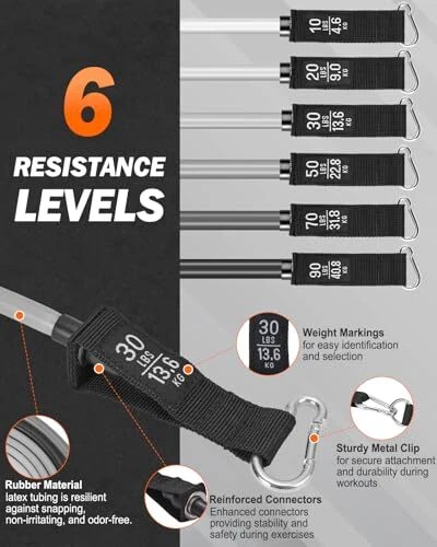 Return Policy Fast Delivery Trusted seller Resistance Bands for Working Out, 270 LBS Heavy Exercise Bands Resistance Bands with Handles, Workout Bands Exercise Bands for Heavy Resistance Training, Home Gym Workout, for Men/Women Product Description 270 lbs Resistance Bands with Handles: resistance bands are color-coded with 6 different resistance levels (10 lbs, 20 lbs, 30 lbs, 50 lbs, 70 lbs, 90 lbs) to suit a wide range of fitness levels, from beginners to professionals. Seamlessly adjust resistance from 10 lbs to a challenging 270 lbs by using them individually or in combination Total Body Workout: This resistance bands for working out is perfect for physical therapy, muscle training, and fat burning. Perform squats, push-ups, leg lifts, and planks to strengthen triceps and leg muscles. Ankle straps help shape your legs, while ladies can use them to sculpt their glutes, chest, and abs, achieving beautiful body curves On-the-Go Fitness: Whether you're at home or on the road, these exercise bands are made from high-quality synthetic rubber for increased durability and elasticity. They're designed to withstand heavy use and provide a longer lifespan, ensuring you can exercise anytime, anyw Building a Mini Gym for you: Exercise Bands are like a pocket gym for some people with limited workout time. And resistance training can produce similar results to dumbbell/weight machines in terms of strength building. With a range of resistance values from 10lbs to 270lbs, exercise bands resistance bands set can help you create different stages of your strength training goals Complete Workout Kit: Our Heavy-Duty Workout Bands Set includes 6 durable tube resistance bands, 2 ankle straps, 2 handles, 1 door anchor, 1 storage bag, and a training guide poster. The widened handles provide a better grip, and the stainless steel carabiner clips on the resistance bands ensure enhanced durability Shipping Returns Payment Shipping Shipping is FREE to all addresses other than APO/PO boxes in the lower 48 states. All our stock ships from US-based warehouses. Shipped via USPS or UPS (depending on location and package weight) Unless stated otherwise, all orders will ship within 24-72 hours of your payment being processed. Check our feedback to see the great reviews of FAST shipping we offer. Returns Seller does not accept returns Payment We currently accept payment via eBay managed payments only. Once payment is cleared, we will dispatch your shipment within 1-3 business days. Please refer to the "Shipping" tab for more information regarding shipping speed to your destination.