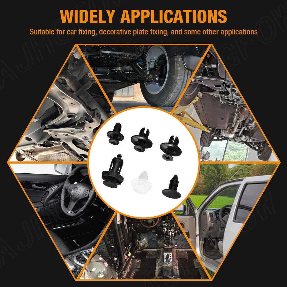 gtin13: 138465855771 Manufacturer Warranty: 1 Year Material: Nylon Clips, Plastic Box Item Type: Fastener Interchange Part Number: Screw Fender Body Door Trim Panel Hood Warranty: 1 Year Fitment Type: Direct Replacement Packing: PP Box UPC: 138465855771 Other Part Number: Under Engine Splash Guard Rivet Fastener Clips Manufacturer Part Number: 100 Pcs Automotive Push Type Retainer Kit Features: Easy Installation Brand: Unbranded Universal Fitment: Yes Attachment Type: Clip-On OE/OEM Part Number: Clip Trim Car Push Type: Bumper Finish: Plastic Superseded Part Number: Universal For Auto Car SUV Off-Road Pickup Truck Color: Black & White Package Contains: 100pcs Clips, 1 Plastic Box Country/Region of Manufacture: China Placement on Vehicle: Left, Right, Front, Rear, Upper, Lower