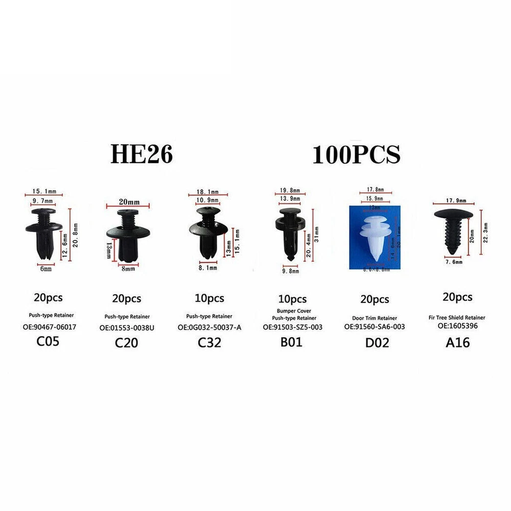 100 Pcs Bumper Trim Panel Fender Engine Push Pin Rivet Clips For Toyota Lexus Description: Features: Various fasteners to meet the needs of different parts of the car. Used widely for car fender, bumper, door or other car surface. High quality plastic material, durable and long service life. Note: All vehicles have a range of different clips used on them. Different models have different sizes and there are no universal clips. Please check as much as possible before buying. Package including 100pcs Clips + 1 Plastic Box Clip of C05 Screw Type Clip Retainer Rivet Condition: Brand New Material: Black Nylon Size Approx: Head Diameter: 15mm Stem Length: 12mm Fits Into 6mm Hole For GM Replace 20426301 For Mazda Replace 9926-50-625 For Toyota Replace 90467-06017 For Toyota Replace 90467-06017-20 For Toyota Replace 90467-06017-41 For Auveco A14260 Clip of C20 Fender Liner Clip Splash Shield Blind Rivet Fits For Mazda Replace FB01-56-964 Fits For Honda Replace 90675-SB3-003 Fits For Nissan Replace 63876-95596 Fits For B16 B18 B18C B20 H22A EK9 EG6 Fits For Accord Civic Prelude CR-V Del Sol CRX Fits For INTEGRA GSR S2000 AP1 MUGEN Fits For TYPE R Si Condition: Brand New Material: Black Nylon Size Approx: Head Diameter: 20.6mm (0.81") Stem Length: 9.5mm (0.37") Fits Into 8mm (0.32") Hole For Auveco A16000 Clip of C32 Push-Type Retainer Black Nylon Head Diameter: 20mm Stem Length: 13mm Fits Into 8mm Hole Fits For Mazda 6 2002-2006 Fits For Mazda 323 1998-2003 Fits For Ford Aspire Fits For Mazda Replace B092-51-833 Fits For Ford Replace MB-455-56143 Fits For Kia Replace MB455-56-143 Fits For Nissan Replace 09409-09302 Fits For Hyundai Replace 86590-28000 For Auveco A17632 Clip of B01 Front & Rear Bumper Retainer Push Type Clip Condition: Brand New Material: Black Nylon Head Diameter: 20mm Stem Length: 18mm Fits Hole Size: 10mm For Honda Replace 91503-SZ5-003 (1996-On) For Acura Replace 91503-SZ5-003 For Auveco A20564 For PAS9282, PAS938 Clip of D02 Interior Trim Board Retainer Clip White Nylon Top Head Diameter: 13mm Middle Head Diameter: 16mm Bottom Head Diameter: 18mm Stem Length: 15mm Stem Diameter: 8.5mm x 8.5mm Overall Length: 20mm Fits For GM Replaces 94858299 Fits For Geo Prizm 1998-On Fits For Toyota Replaces 90467-10161 Fits For Sienna, Solara & Tercel 1990-On Fits For Previa 2007-On, Corolla 2003-On Fits For Lexus LS460, LS460L 1990-On For Auveco A18876 Clip of A16 Radiator Yoke, Fender & Bumper Shield Retainer Christmas Tree Type Clip Black Nylon Head Diameter: 17.8mm Stem Length: 20mm Stem Diameter: 7.6mm For GM Replaces 1595864, 1605396 For Ford Replaces 388577S For Ford Replaces W705589-S300 For Auveco A11146, A15414 We offer free returns with any orders within 30 days from the date of delivery. No restocking fees, no administrative fees, no return shipping fee, and no hassle! We will email you when a prepaid return label is ready to download from your ebay account. You just have to print it out and drop the package off at a USPS facility. When we get it back, you will be notified and credited for the full price of the items/products that are returned. Since the shipping fees go directly to the delivery service, we are not able to refund any shipping costs. For warranty returns passed the 30 days, please call or email us so we can make sure we are providing you with the best possible support.