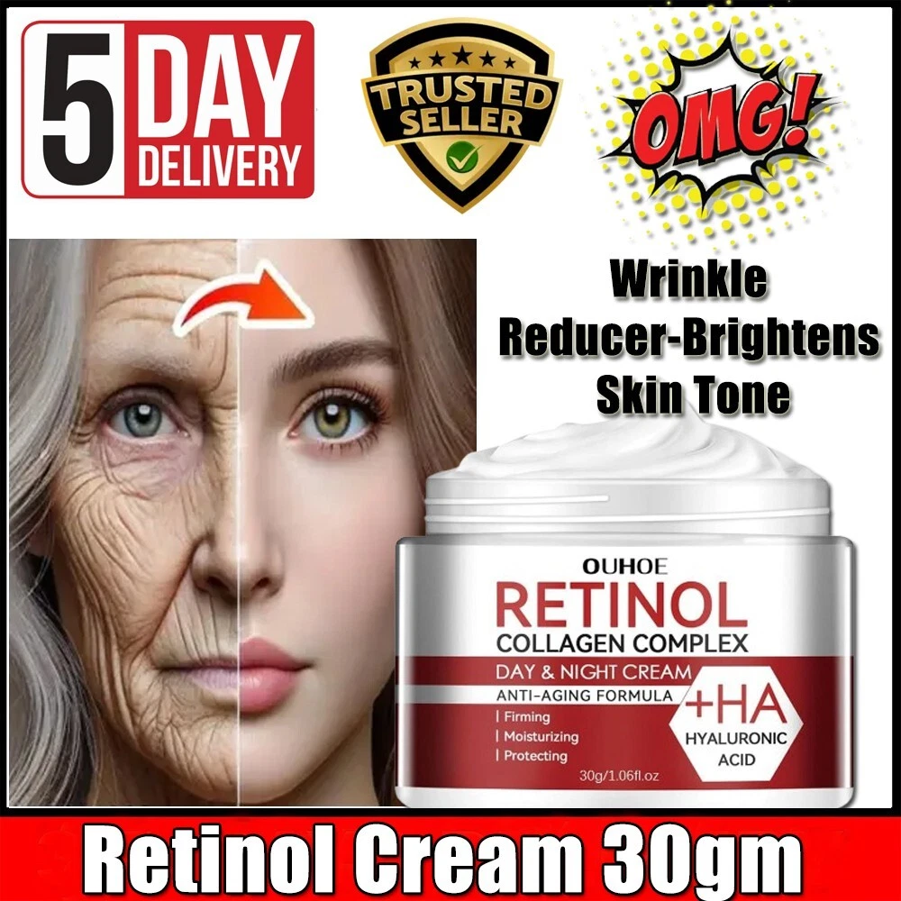 Retinol Cream for Face,Retinol Facial Moisturize,Night Cream for Face & Under Eye,Hydrating face cream 1 fl oz/30gm 【Moisturizing Cream】 Face retinol moisturizer can hydrate your skin and water your skin, perfect for evening skincare and under makeup! 💙【Nourishing & Moisturizing】 Retinol cream has a good hydration effect, can soothe rough skin, give your skin to replenish moisture, but also in the skin surface to form a "water-locking film", to prevent water loss, so as to have a long-lasting moisturizing effect, can make your skin become moisturized and smooth. 💚【High-quality Formulas】 Collagen and retinol facial moisturizer contains a wide range of quality ingredients in a premium formula that is gentle and kind to your skin and suitable for all skin types. You can feel good about applying the cream to your neck and eyes to gradually reduce the appearance of neck lines and under-eye puffiness, helping to rejuvenate the skin. ⭐【Method of Use】 It is recommended that you use facial night cream moisturizer in the evening after washing. before you use it, please clean your face, gently dry your face, then take an appropriate amount of night cream, apply it evenly on your face, gently pat and massage your face and neck to promote the absorption of the cream. Note: This Product is designed to deliver optimal results, offering high-quality performance and satisfaction. Please note that individual experiences and outcomes may vary based on personal use, preferences, and unique circumstances. For best results, we recommend following the provided guidelines and ensuring the product is used as intended. Product result may vary for every individual. NOTE Hello Buyer, Thank you for your interest in our product! Please note that I am a reseller, and your order will be shipped directly from our nearest warehouse to your address. If you have any questions or need assistance, feel free to reach out.