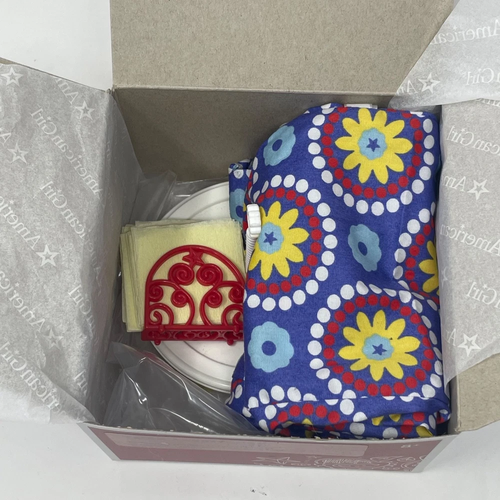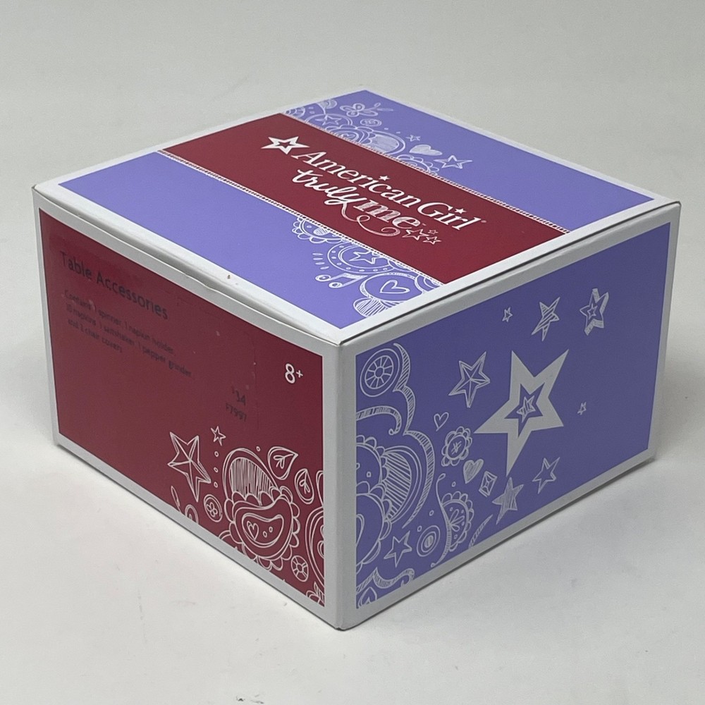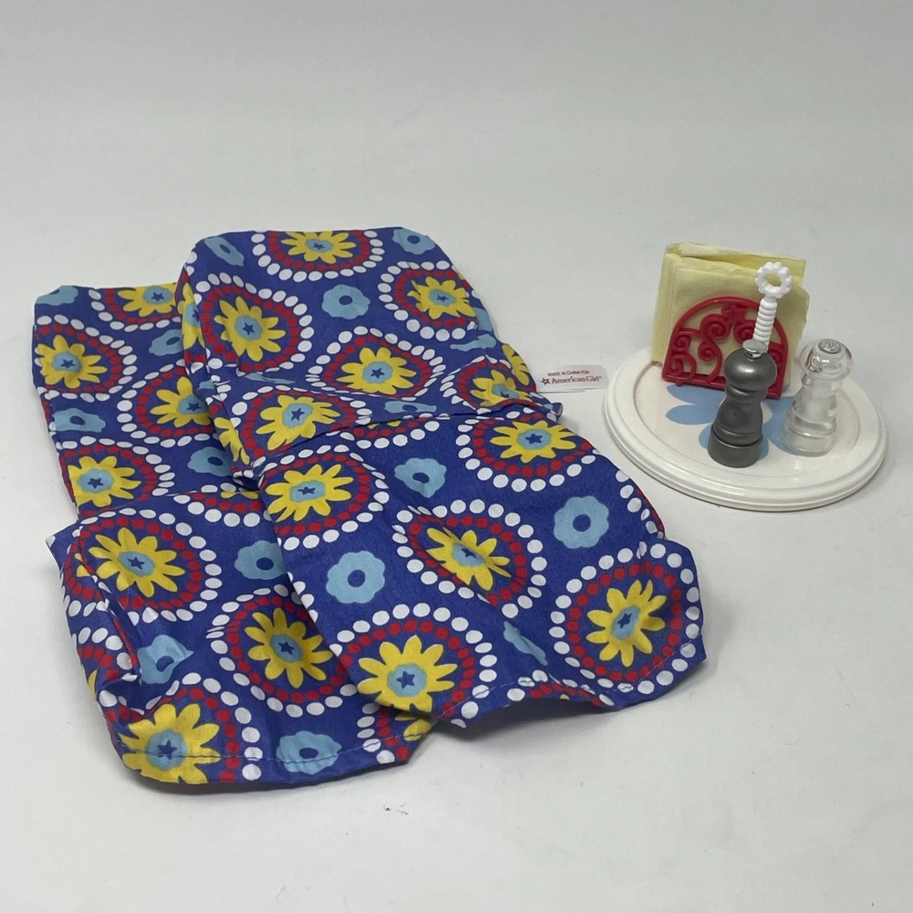 American Girl Doll My American Girl Table Accessories Released - 2014 Retired - 20?? Table Accessories set comes in Original Box!! Includes: Original Box, Dress, American Girl Tissue Paper, Chair Covers(2), Table Spinner, Napkins, Napkin Holder, Salt Shaker and Pepper Grinder Set is in excellent condition. Please refer to the images as they are part of the description.