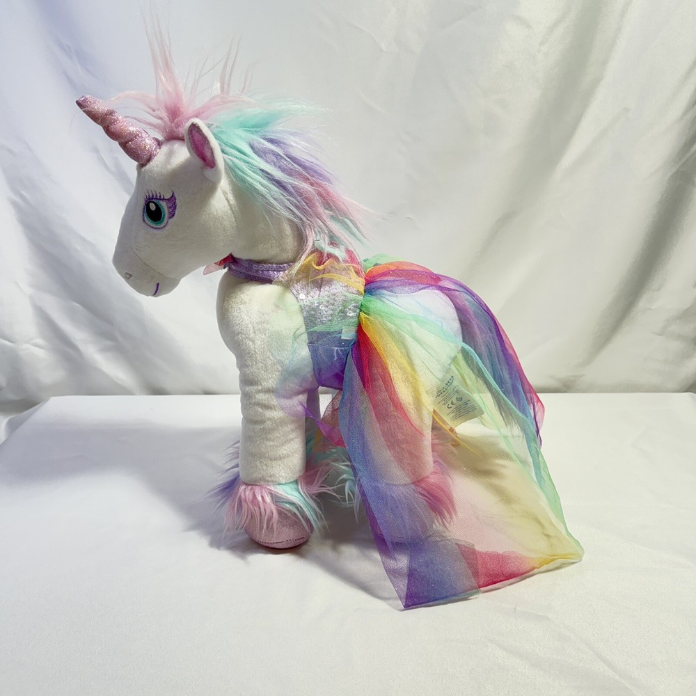 This retired Build-A-Bear plush doll is a must-have for any My Little Pony fan. The 17-inch white unicorn boasts beautiful blue eyes and comes dressed in clothing and accessories. This original, licenced reproduction from the 2010-2019 collection is in excellent condition and is the perfect addition to any collection. The doll is made of high-quality plush material and features intricate details, such as the unicorn horn and wings. This single unit doll weighs 1 pound and is perfect for display or play. Add this magical Build-A-Bear Workshop My Little Pony plush doll to your collection today! Note: Sound does not work