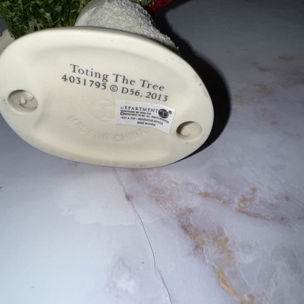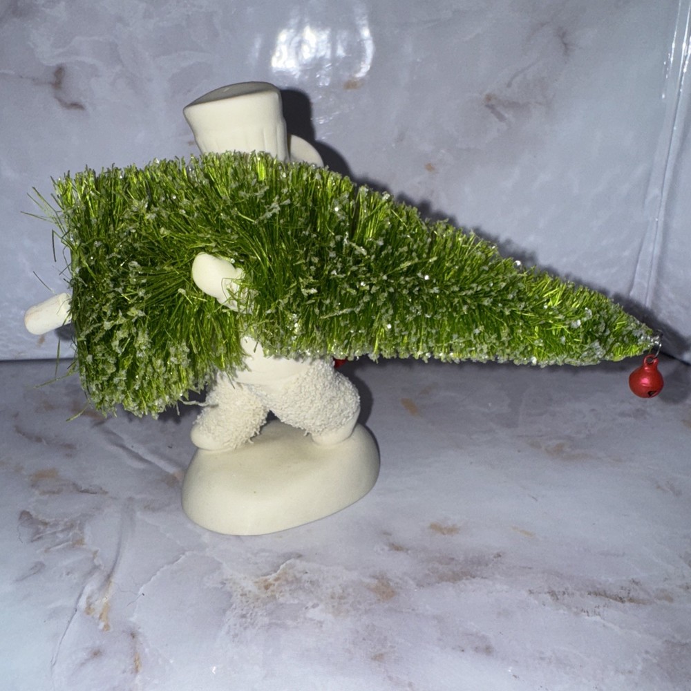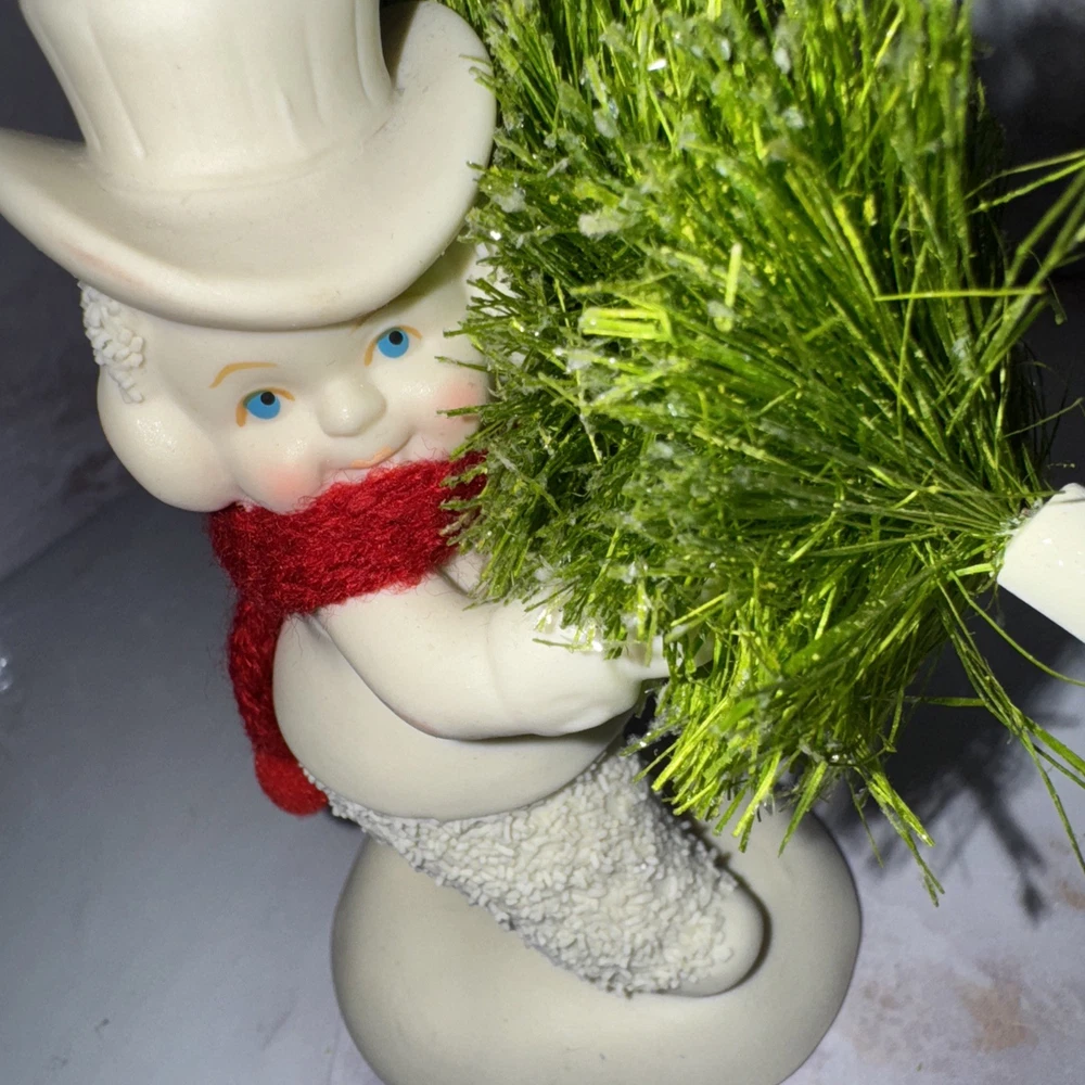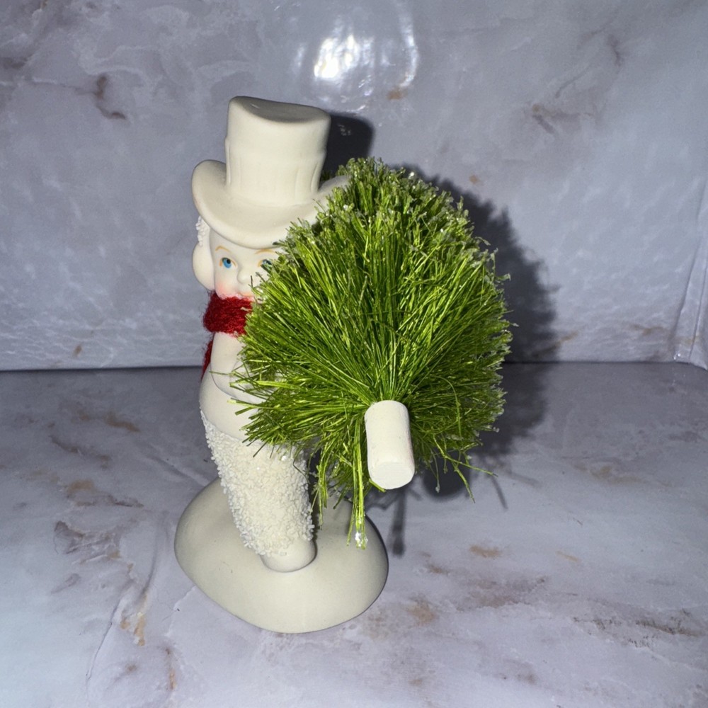 Enhance your holiday decor with the charming Retired Dept 56 Figurine from the beloved Snowbabies collection. This piece, titled "Toting the Tree," showcases a delightful portrayal of a Snowbaby carrying a tiny Christmas tree. Crafted from high-quality porcelain, it is finished with a matte cream color that highlights the intricate details and adds a touch of elegance to your festive display. The figurine is a 2013 original, featuring a whimsical design that captures the essence of the Christmas spirit. Complete with glittery accents and a miniature bottle brush Christmas tree, "Toting the Tree" is a retired piece, making it a unique find for collectors and those looking for a special holiday adornment. It is perfect for anyone who appreciates the timeless allure of American-style Christmas decor.