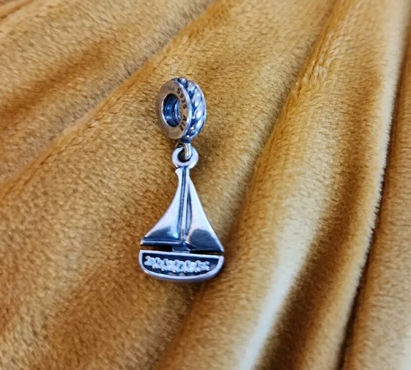 Elevate your jewelry collection with the retired SAIL AWAY Authentic PANDORA Sailboat DANGLE Charm. Crafted from sterling silver with a purity of .925, this charm exudes elegance and durability. Its silver color offers a classic appeal that complements any charm bracelet or necklace. The charm features a beautiful bead and dangle design, showcasing PANDORA's signature style. It's a perfect piece for those who adore the sea or simply appreciate the grace of nautical-themed jewelry. Add this timeless charm to your assortment and enjoy the allure it brings to your ensemble.